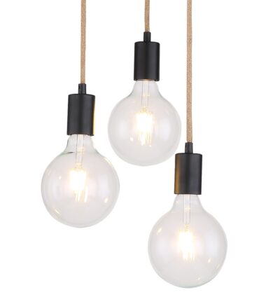 Ova plafonska lampa sa tri grla ističe se svojim posebnim dizanom. Na užadima od konoplje nalazi se grlo E27. Različite dužine užeta od 20,30 i 40 cm takođe vam omogućavaju da koristite dekorativne sijalice. LED sijalice obezbeđuju veću održivost. Lampa ima prečnik od 30cm i daje vašem domu očaravajući izgled.