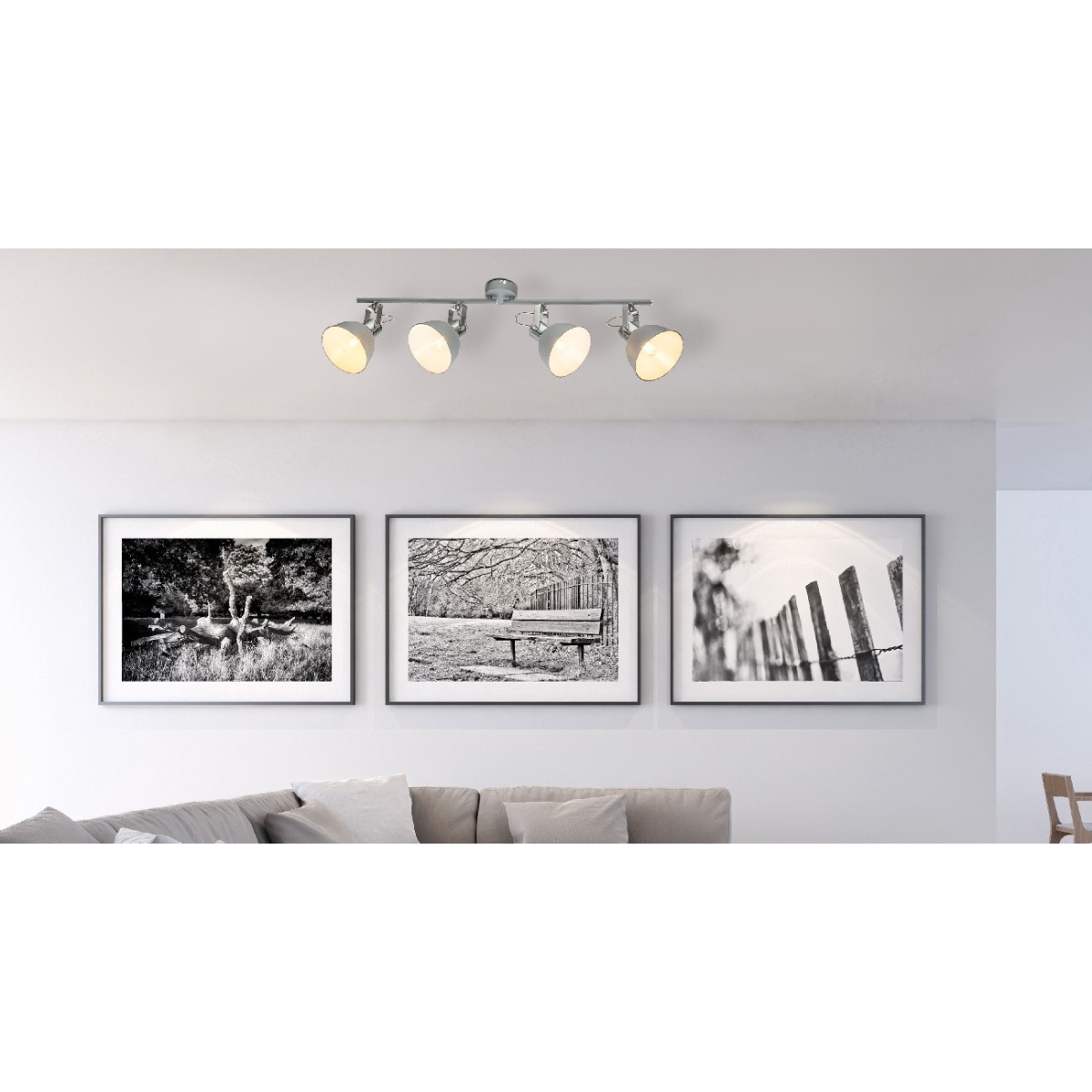 Plafonska lampa iz serije GERDA karakteristična je po svom klasičnom dizajnu. Četiri tehnička metalik spota, prikačena na dve ravne grane, napravljene su od kombinacije sivog i hromiranog metala. Bela unutrašnjost abažura obezbeđuje pravo svetlo bez obzira koju sijalicu odaberete (4 x E14 / max:40W). Sa ostalim modelima ove serije reflektora mogli biste da dovršite sliku u vašem domu.