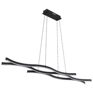 Viseća lampa serije GERONIMO u crnom mat dizajnu napravljena je od metala i aluminijuma u crnoj mat završnoj obradi i plastike boje opala. PVC kabl je crn, a visina lampe je podesiva. Sa dimenzijama DxŠxV 1080x180x1200 mm i snagom LED diode od 35 W i napajanjem od 230 V, lampa proizvodi intenzitet svetlosti od 3570 lm na temperaturi boje od 3000 K.