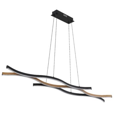 Viseća lampa serije GERONIMO u mat crnom dizajnu sa dekoracijama koje podsećaju na drvo napravljena je od metala i aluminijuma u mat crnoj završnoj obradi i plastike boje opala. PVC kabl je crn, a visina lampe je podesiva. Sa dimenzijama DxŠxV 1080x180x1200 mm i snagom LED diode od 35 W i napajanjem od 230 V, lampa proizvodi intenzitet svetlosti od 3570 lm na temperaturi boje od 3000 K.