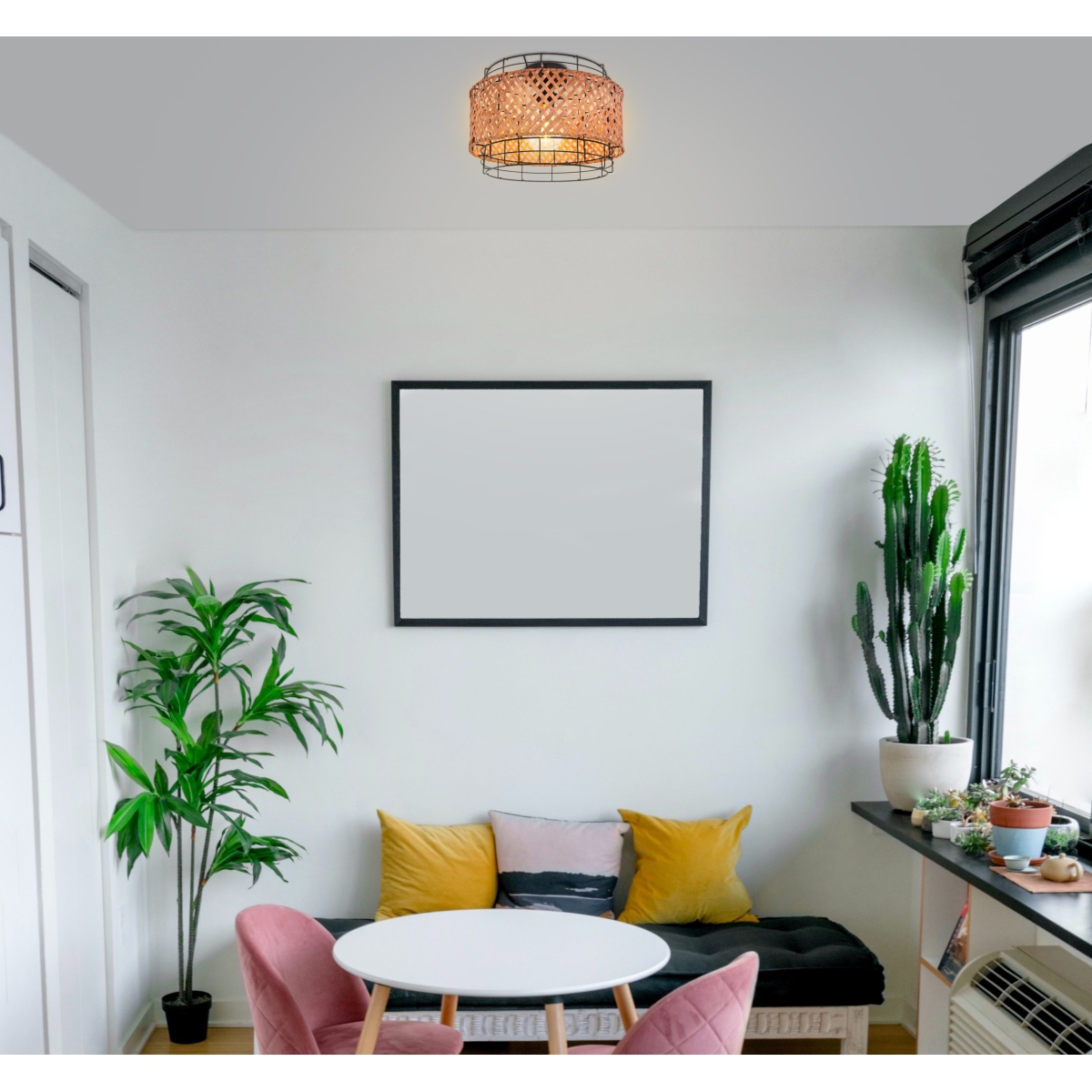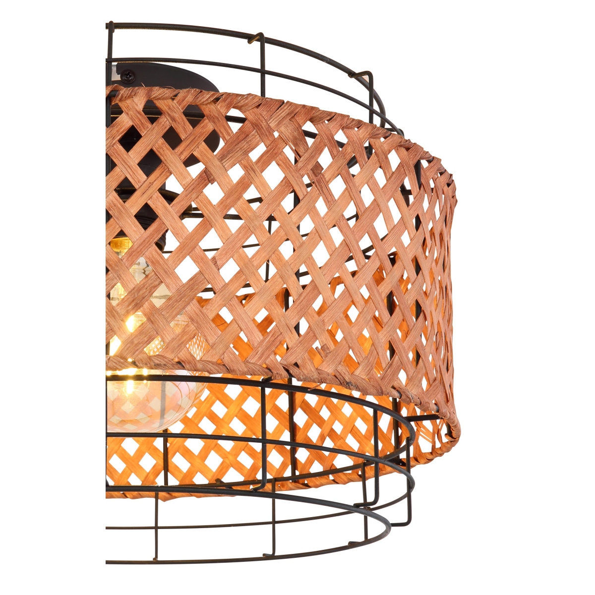 Ova vintage plafonska lampa impresionira svojim industrijskim/boho dizajnom. Crni metalni okvir i abažur od bambusa se savršeno usklđuju međusobno i svakoj sobi daju nešto posebno. Lampa je opremljena E27 grlom i preporučujemo LED filament sijalicu (max. 40W) kako bi upotpunili vintage stil.