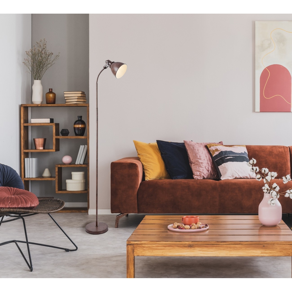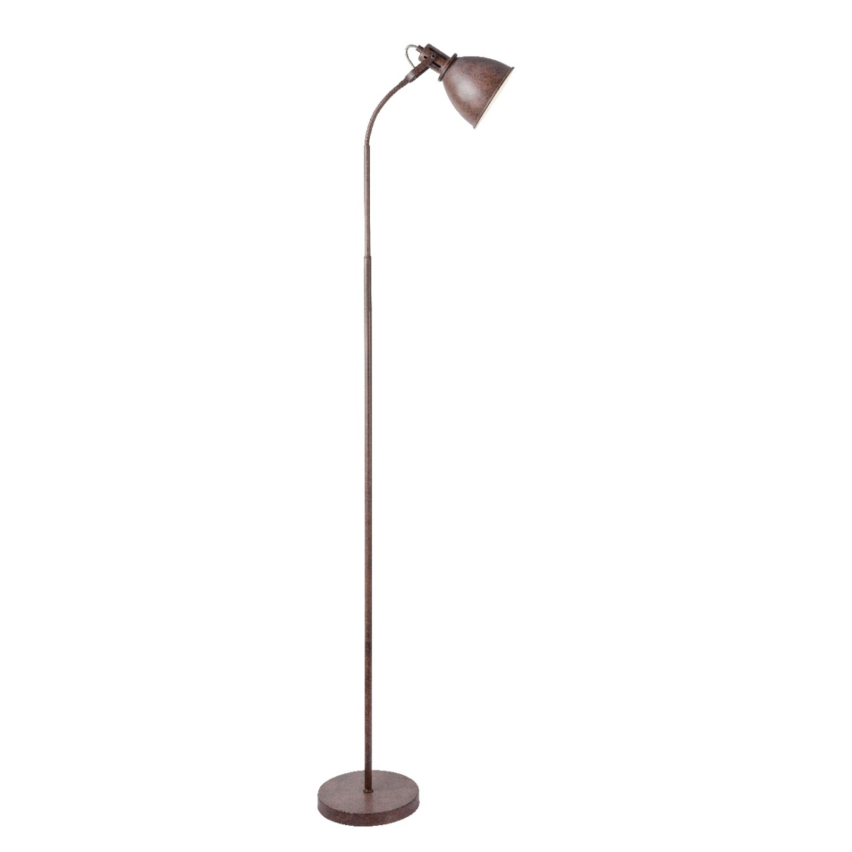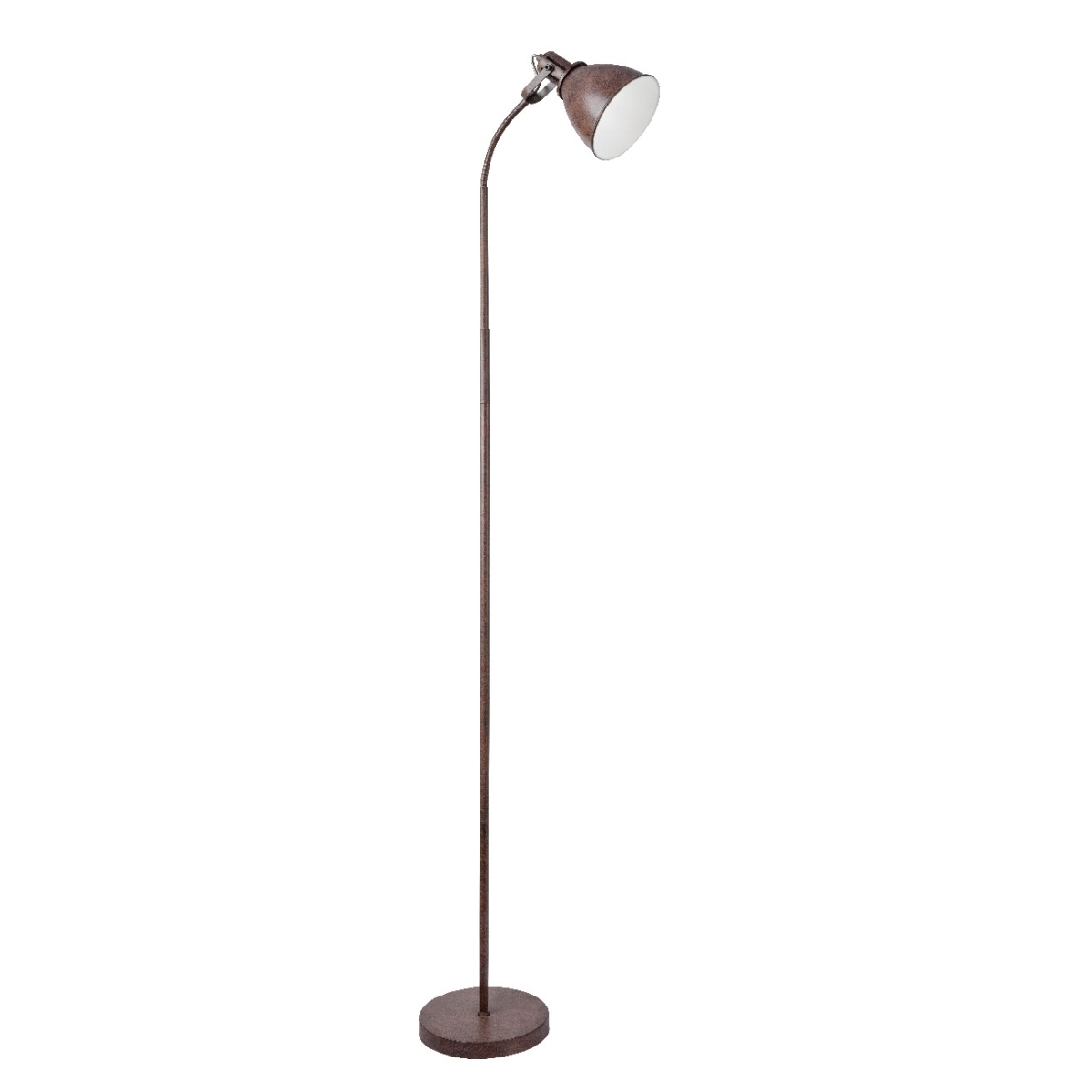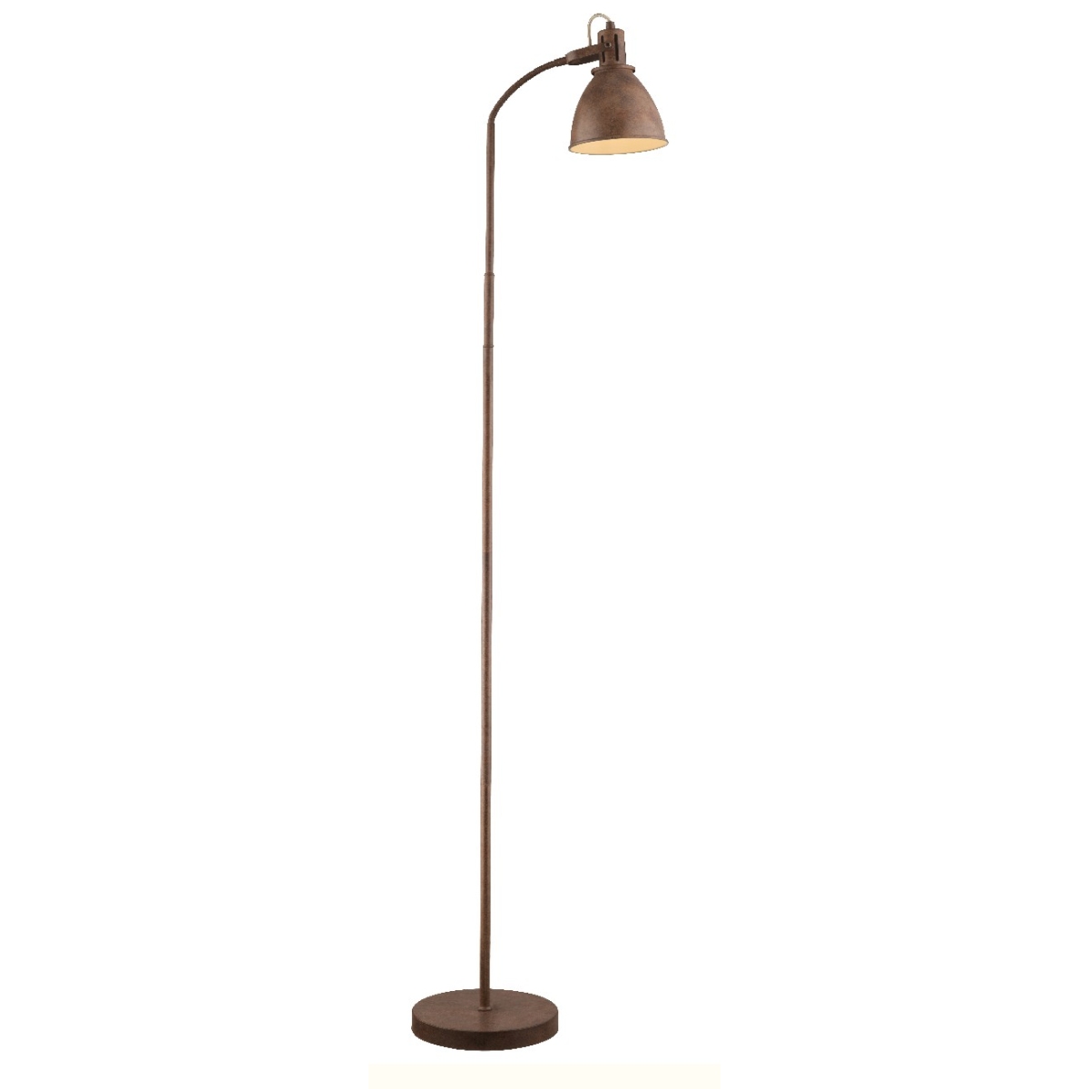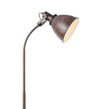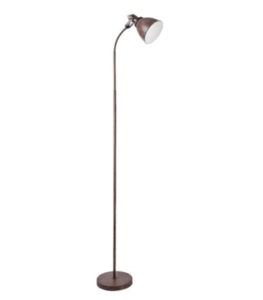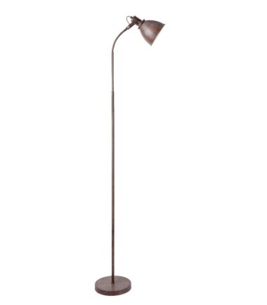 Podna lampa iz serije GEORGIO kombinuje odličnan izgled sa bezvremenim dizajnom. Metal u boji rđe čini ovu unutrašnju lampu posebno interesantnom za klasične životne prostore. Unutrašnjost abažura je bela i ima E14 grlo. Tako sami odlučujete o svetloj boji i sjajnom intenzitetu (max.40W). Zbog uštede energije i trajnosti preporučujemo LED sijalice. Flekso grana, dostupan prekidač za uključivanje/isključivanje, kao i kabl za povezivanje dugačak 1,8 metara čine upotrebu ove podne lampe veoma fleksibilnom.