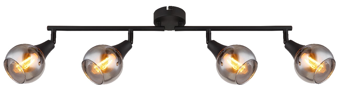 Reflektor je napravljen od crnog matiranog metala, dimljenog stakla i zlatnog brušenog metala. Dimenzije su DxŠxV: 600x90x168 mm. Za reflektor su potrebne četiri E14 sijalice maksimalne snage 40W i napona 230V, koje nisu uključene. Ovaj reflektor je pravi ukras za oči i biće vrhunac u svakoj prostoriji. Sa svojim modernim dizajnom i visokokvalitetnom izradom, pravi je dragulj. Reflektori su pokretni i mogu se pojedinačno poravnati kako bi se obezbedilo optimalno osvetljenje. Uverite se sami!