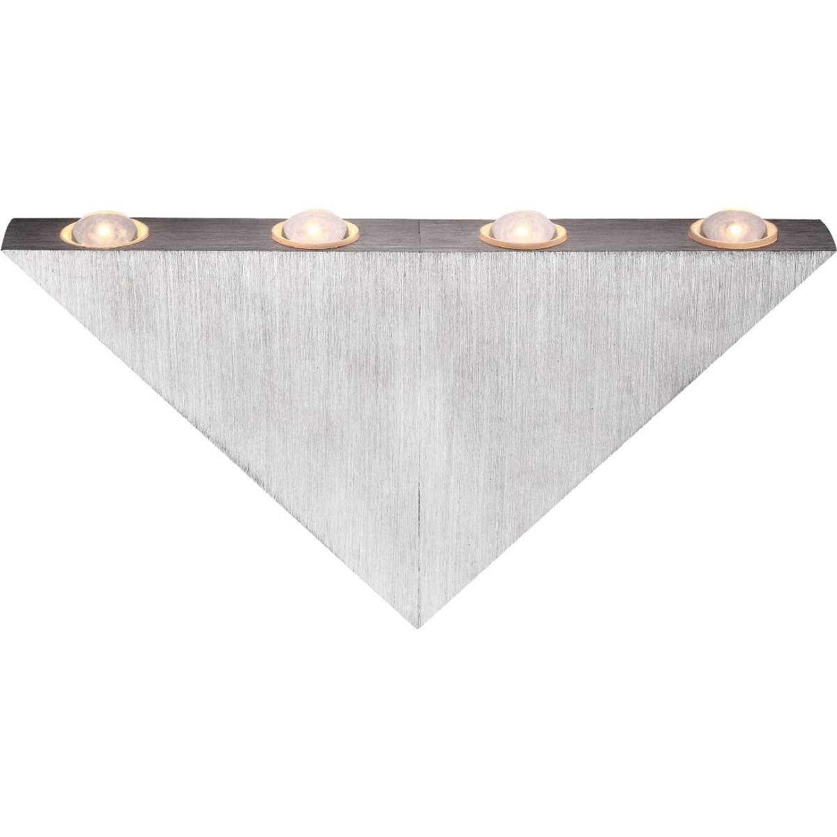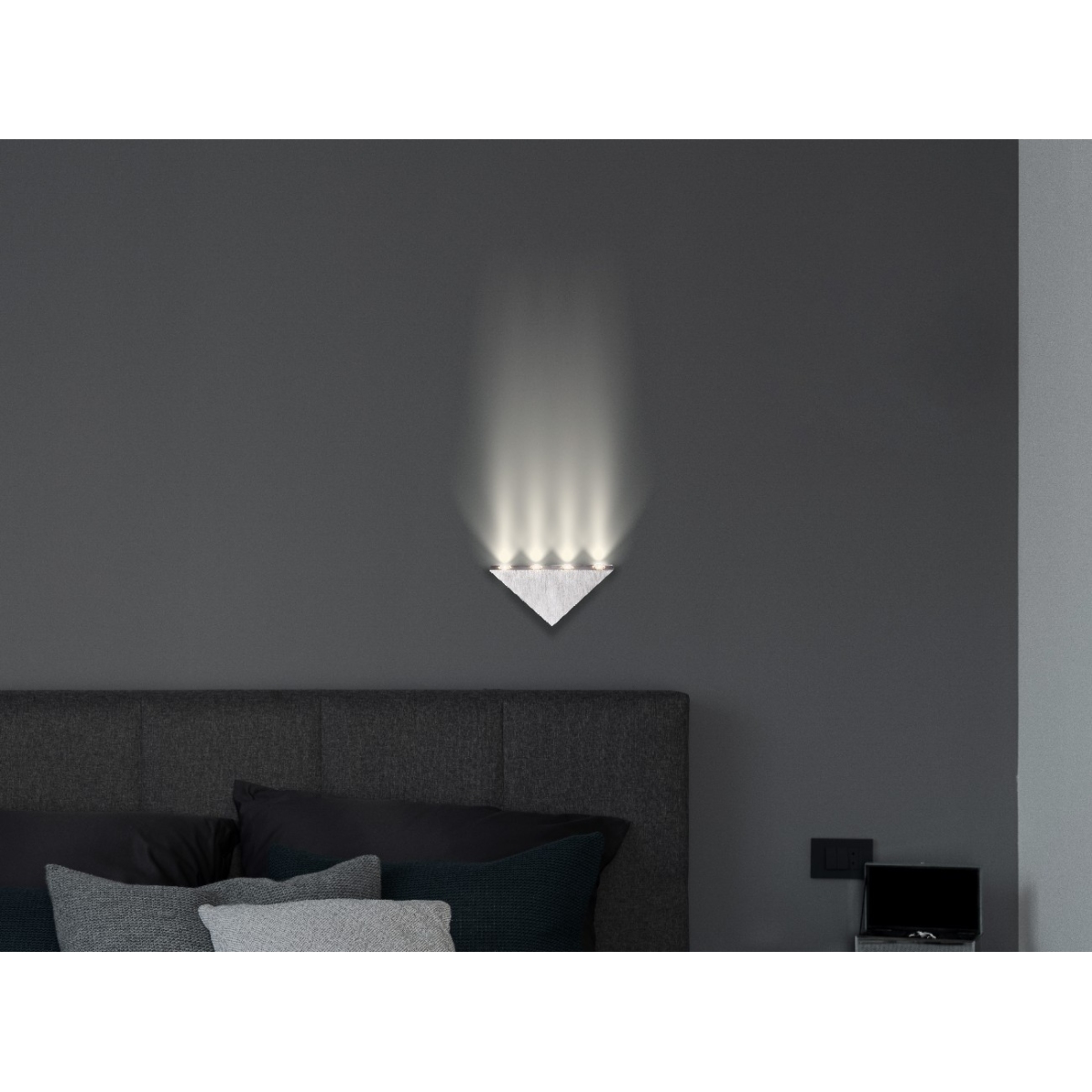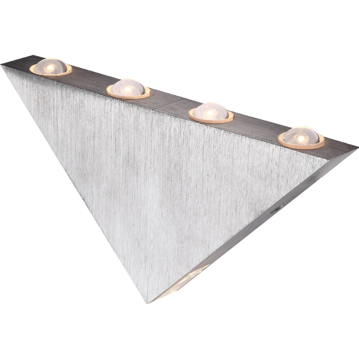 Zidna lampa serije GORDON, napravljena od brušenog aluminijuma privlačiće poglede u bilo kom dnevnom boravku. Mala trouglasta lampa, veličine 16,5 cm, pet ugrađenih LED sijalica koje odgovaraju 400 lumena jakom svetu sa prijatnim toplo belim svetlom od 3000K. Uz ostale zidne lampe iz iste serije , sliku možete upotpuniti u svom dnevnom boravku.