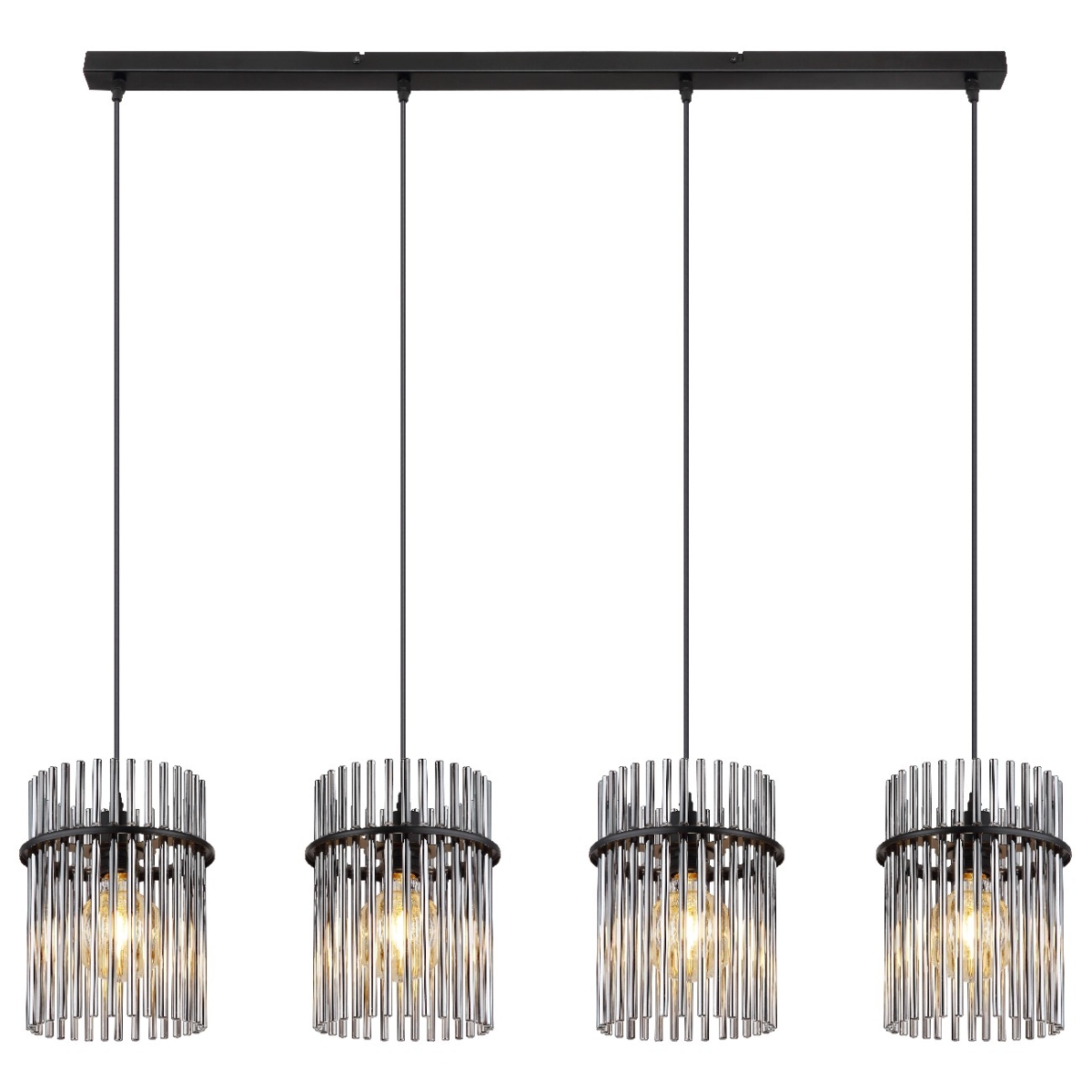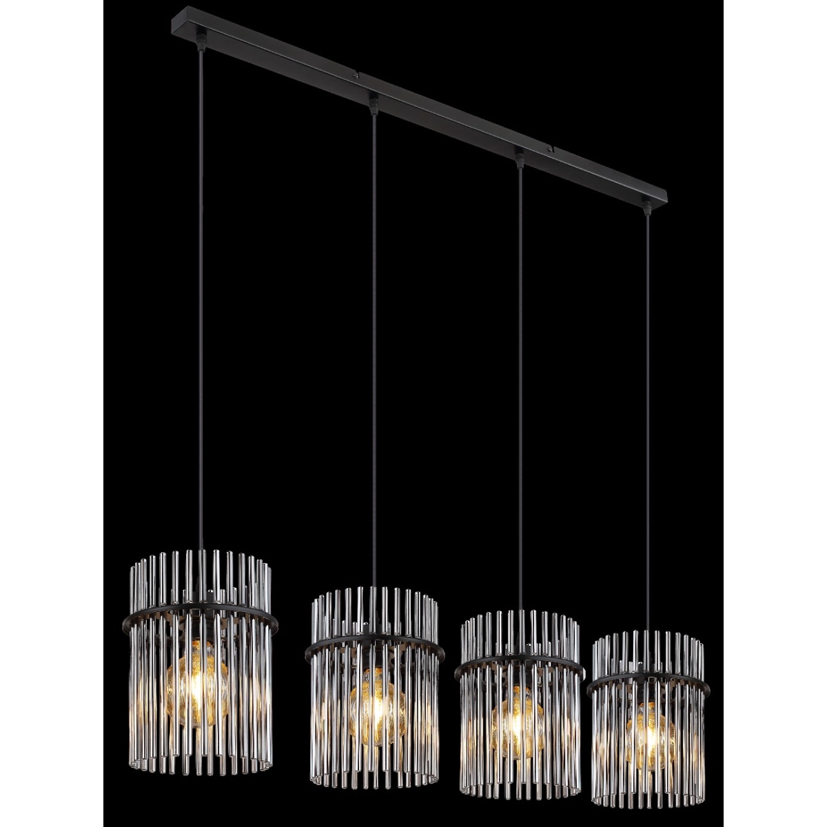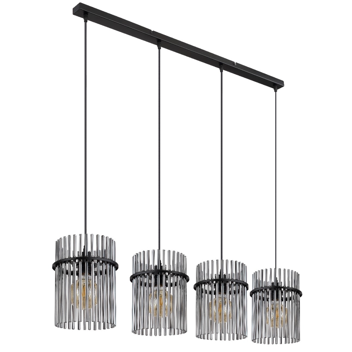 Ova elegantna visilica serije GORLEY inspiriše svojim modernim dizajnom. Četiri crna kabla do 1,4 m natavljaju se na pravougaonu plafonsku osnovu koja se montira na E27 grlo. Opremljene su oblikovanim cilindričnim abažurima napravljenim od staklenih šipki i daju vam mogućnost da sami odredite laganu boju i jačinu do maksimalne snage od 60 vati. Zbog dugovečnosti i uštede energije preporučujemo LED sijalice.