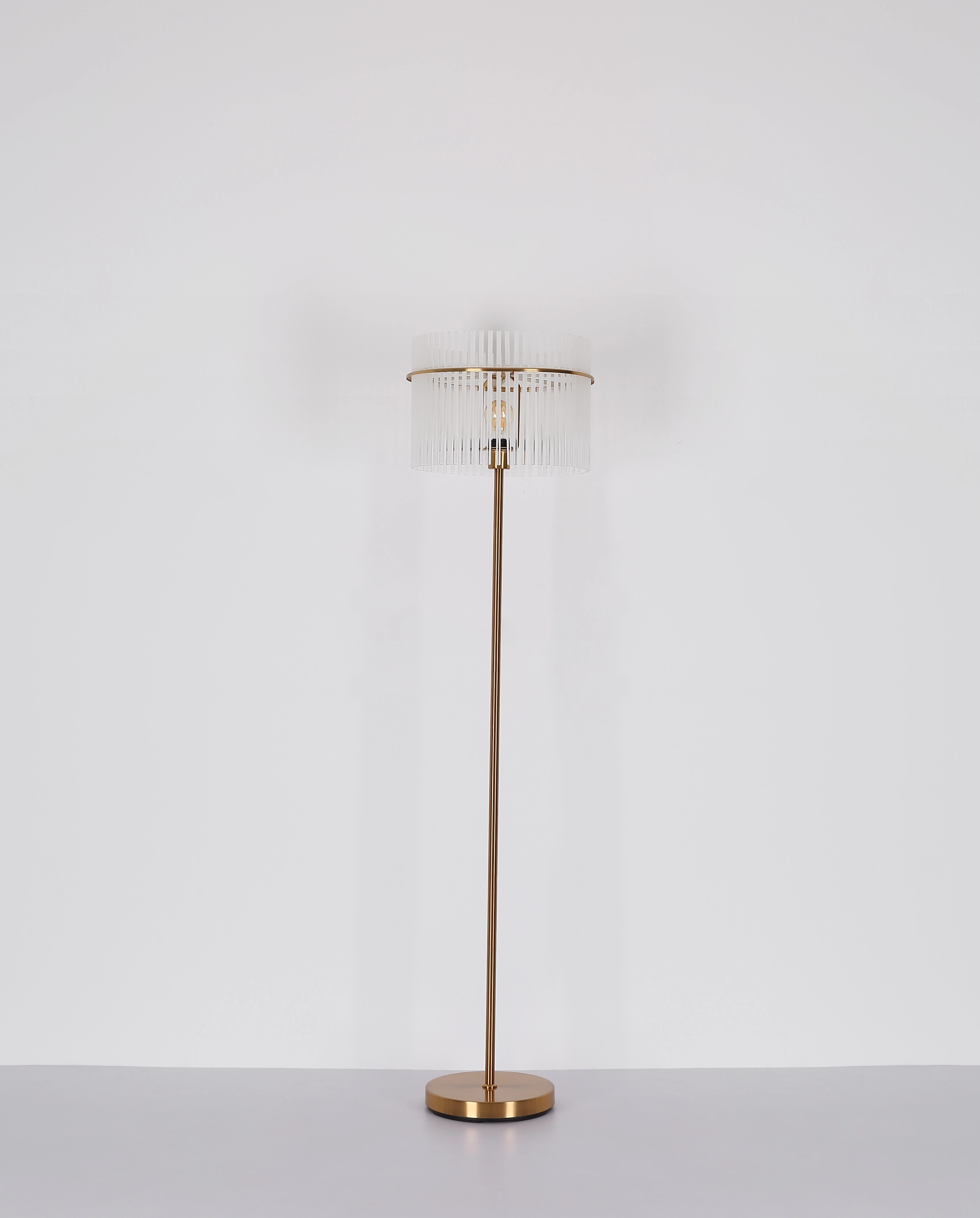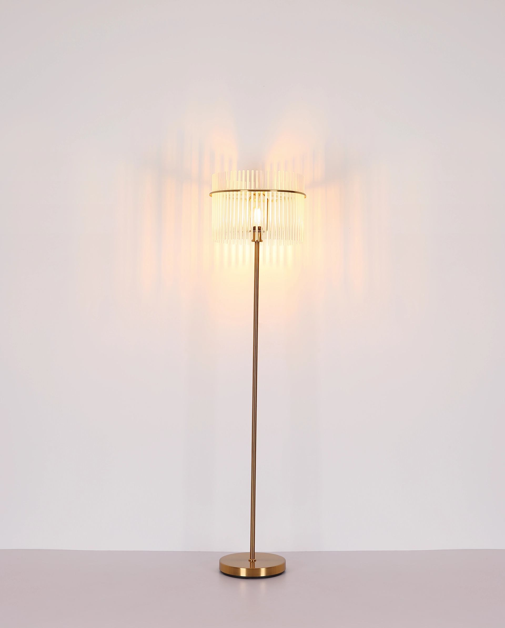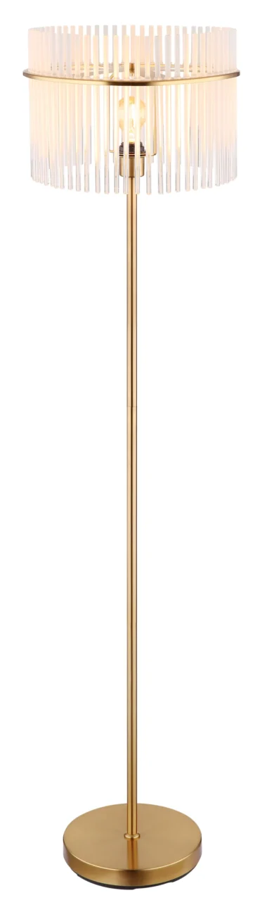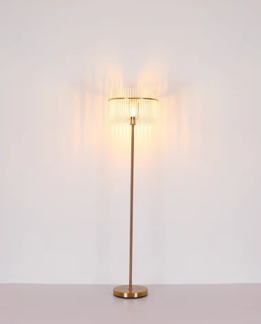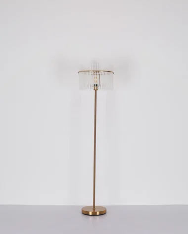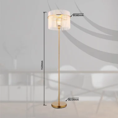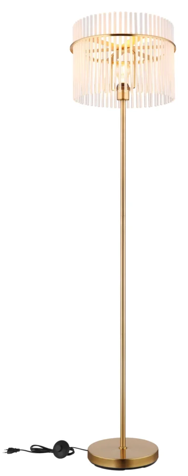 Podna lampa GORLEY je elegantan izvor svetlosti koji svojim jedinstvenim dizajnom uranja svaku prostoriju u prijatan ambijent. Abažur lampe je okrugao i sastoji se od opalnih, providnih staklenih šipki koje stvaraju blagi gradijent. Telo podne lampe GORLEY je napravljeno od mat, zlatnog metala i daje lampi stilski izgled. Zahvaljujući prekidaču na kablu, podna lampa GORLEY se lako uključuje i isključuje. Sa prečnikom od 380 mm, zauzima malo prostora, a i dalje pruža prijatno osvetljenje. Podna lampa GORLEY je savršena kao lampa za čitanje pored sofe ili kao dekorativni element u vašoj dnevnoj sobi. Visokokvalitetni materijal i pažljiva izrada obećavaju dug vek trajanja. Napravite stilski utisak u svom domu sa podnom lampom GORLEY i uživajte u prijatnoj atmosferi koju stvara.