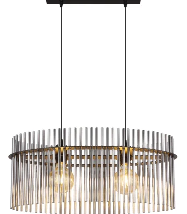 Viseća lampa GORLEY kombinuje moderan dizajn sa elegantnom funkcionalnošću. Njeno ovalno telo i okrugli abažur napravljen od dimljenih staklenih šipki nude stilsko rešenje za osvetljenje. Mat crno metalno telo daje lampi savremeni dodir, idealnu za trpezariju, dnevnu sobu ili kao dekorativni element. Sa E27 grlom, nudi fleksibilnost u izboru sijalice.
