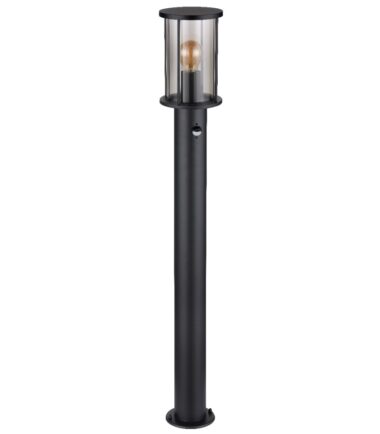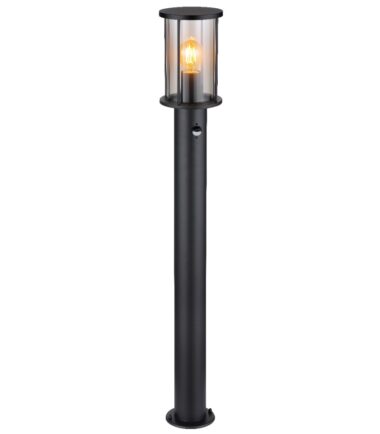 Spoljašnja lampa serije GRACEY ima kućište napravljeno od crnog mat nerđajućeg čelika i stakleni abažur u boji dima. Metalne šipke koje okružuju abažur su takođe mat crne. Uključen je senzor i stepen zaštite lampe je IP54. Dimenzije lampe su ø143mm x H1000mm. Lampa je namenjena za sijalicu E27 sa žarnom niti sa maksimalnih 60W i 230V. Ovo nije uključeno u opseg isporuke i mora se kupiti posebno.