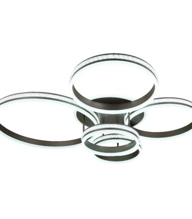 Uronite u fascinantan svet GROUNI plafonske lampe! Brušeni metal i aluminijum daće vašoj sobi otmenu atmosferu. Providni plastični kristali i opalno akrilno staklo stvaraju impresivnu igru svetlosti. Pomoću funkcije dimovanja, koja se može kontrolisati na više nivoa putem zidnog prekidača, imate potpunu kontrolu nad intenzitetom svetlosti. Boje se mogu fiksirati po vašem ukusu, a ugrađena funkcija memorije vam omogućava da zadržite željene postavke. Pored toga, GROUNI plafonska lampa nudi noćno svetlo i dolazi sa daljinskim upravljačem. Baterija (2x AAA) je već uključena. Sa dimenzijama 1140x910x215mm (dužina x širine x visine) i prstenom prečnika 2x 30 cm, 2x 40 cm i 1x 60 cm, GROUNI plafonska lampa će privlačiti poglede u svakoj prostoriji. Lampa dolazi sa energetski efikasnom LED sijalicom koja nudi snagu od 120W, napon od 230V, 1265-12580lm svetleći fluks (izvor) i 545-4900lm svetleće efikasnosti (izlaz) kao i podesivu temperaturu boje od 2700-6000K (CCT).