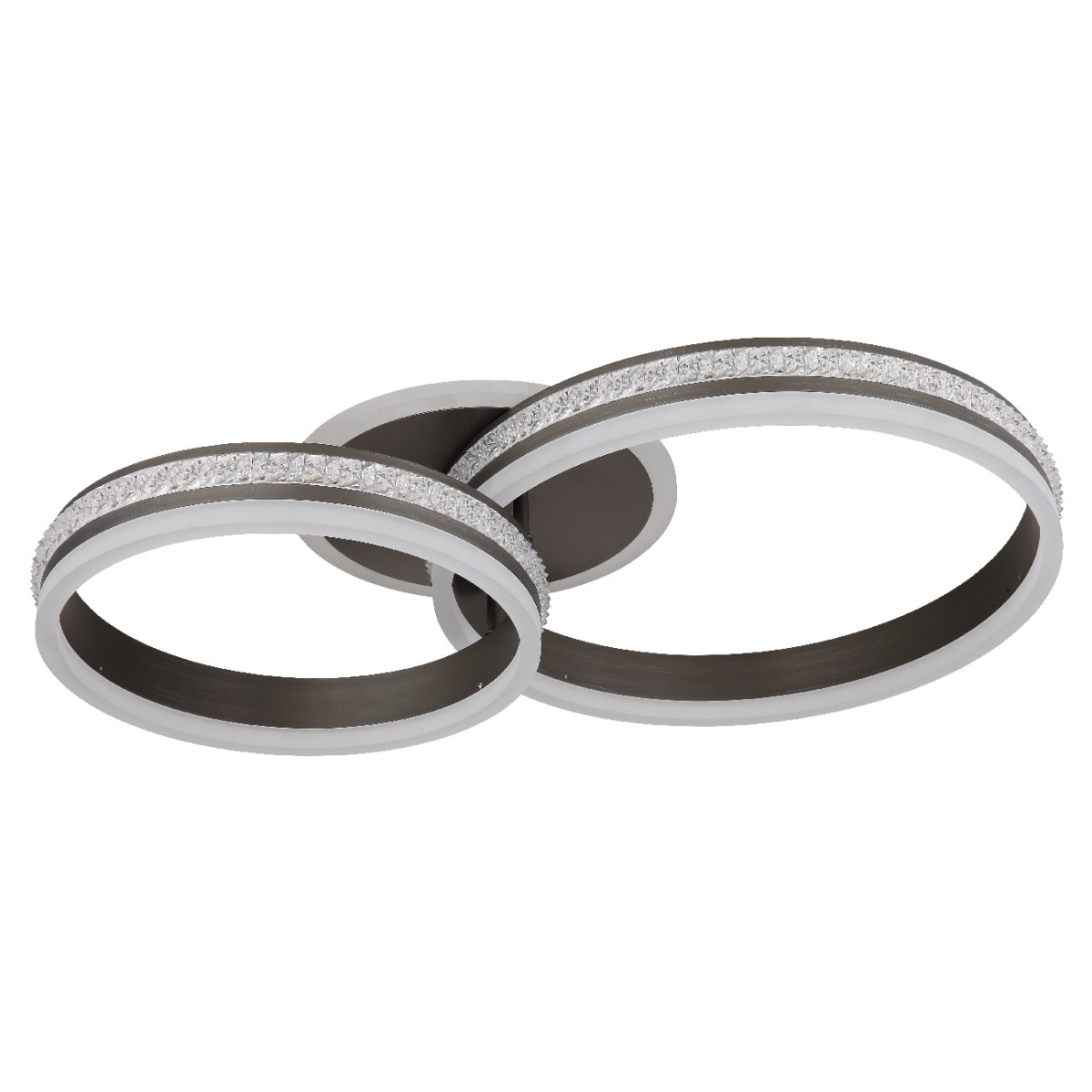 Uronite u fascinantni svet plafonske lampe GROUNI! Njihov titanijumski brušeni metal i aluminijum će dodati dašak moderne elegancije vašem prostoru. Prozirni plastični kristali i opalno akrilno staklo stvaraju impresivnu igru svetlosti. Sa funkcijom prigušivanja, koja se može kontrolisati na nekoliko nivoa pomoću vašeg zidnog prekidača, imate potpunu kontrolu nad intenzitetom svetlosti. Boje se mogu podesiti po vašem ukusu, a ugrađena funkcija memorije vam omogućava da zadržite željena podešavanja. Pored toga, plafonska lampa GROUNI nudi noćno svetlo i dolazi sa daljinskim upravljačem. Baterije (2x AAA) su već uključene. Sa dimenzijama 640x400x150 mm (dužina x širina x visina) i prečnikom prstena od 30 cm i 40 cm po komadu, plafonska lampa GROUNI postaje impresivan ukras u svakoj prostoriji. Svetiljka se isporučuje sa energetski efikasnom LED sijalicom snage 50W, naponom od 230V, svetlosnim fluksom (izvor) od 648-5325lm i svetlosnom efikasnošću (izlaz) od 442-2600lm, kao i podesivom temperaturom boje od 2700-6000K (CCT).
