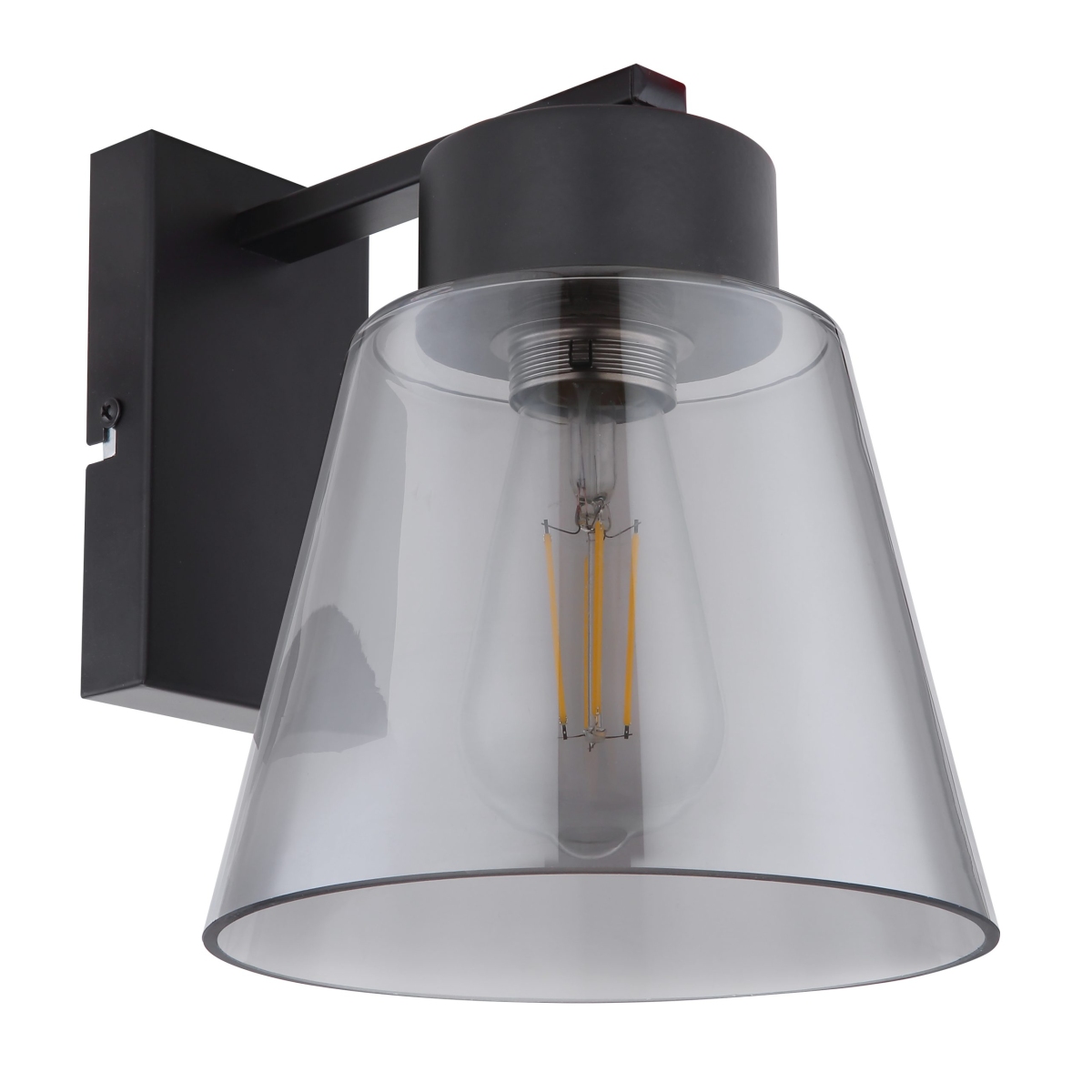 Ova zidna lampa serije GUMBA ističe se svojim jednostavnim dizajnom napravljenim od crno-mat metala i stakla u boji dima. Zidna lampa dužine 23 cm sastoji se od pravougaone metalne ploče na kojoj se nalazi ugaona metalna šipka. Za ovo je prikačen levakasti, zadimljeni stakleni abažur (ø 19 cm) koji se može opremiti E27 grlom po vašem izboru. To vam daje mogućnost da u skladu sa svojim idejama odredite boju svetla i jačinu. Sa više artikala iste serije možete da kreirate elegantnu atmosferu u svom enterijeru i upotpunite celokupnu sliku.