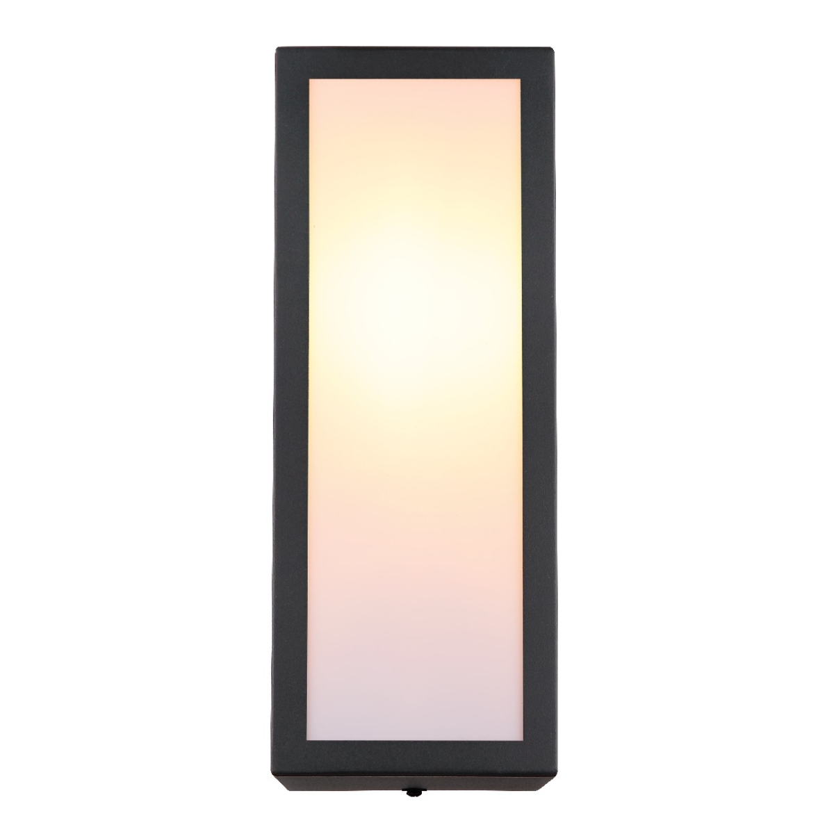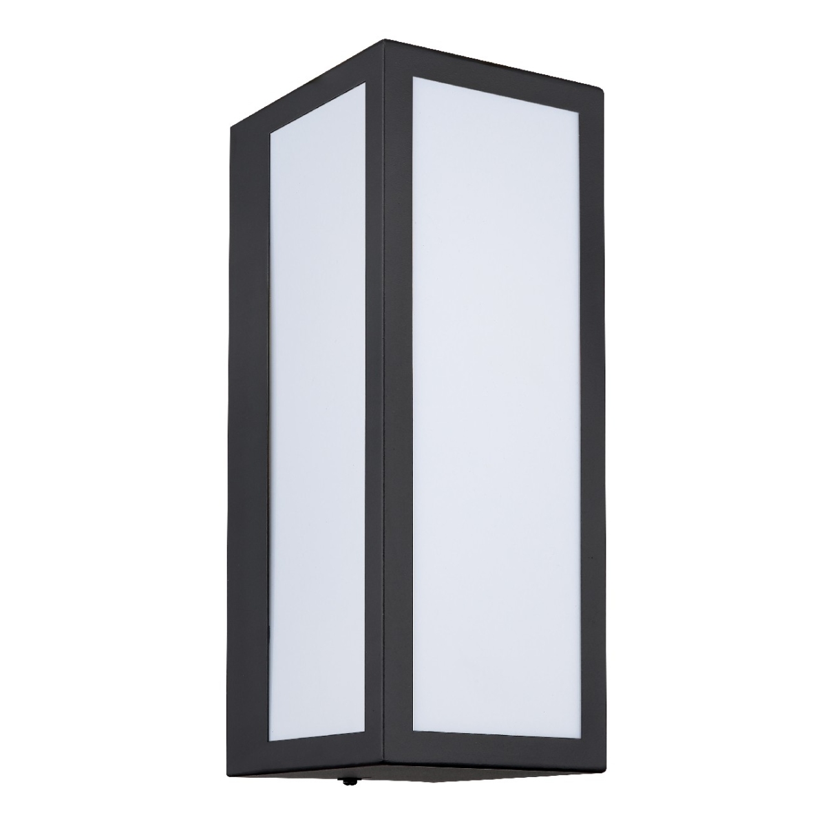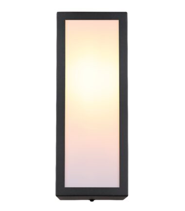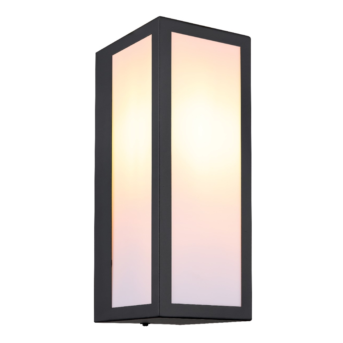 Ova moderna spoljašnja lampa ubeđuje sjajnim jednostavnim dizajnom napravljenim od stakla i metala. Ova lampa u crnoj boji sastoji se od pravougaonog metalnog okvira (12x32cm) i prelepog opalnog staklenog zida sa svake strane. Grlo E27 vam omogućava da sami odredite boju svetla i jačinu do maksimalne snage od 60 vati. IP44 stepen zaštite od prskanja vode osigurava bezbrižno postavljanje lampe na otvorenom.