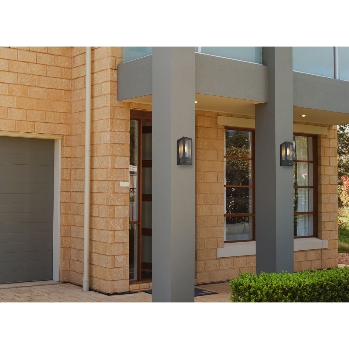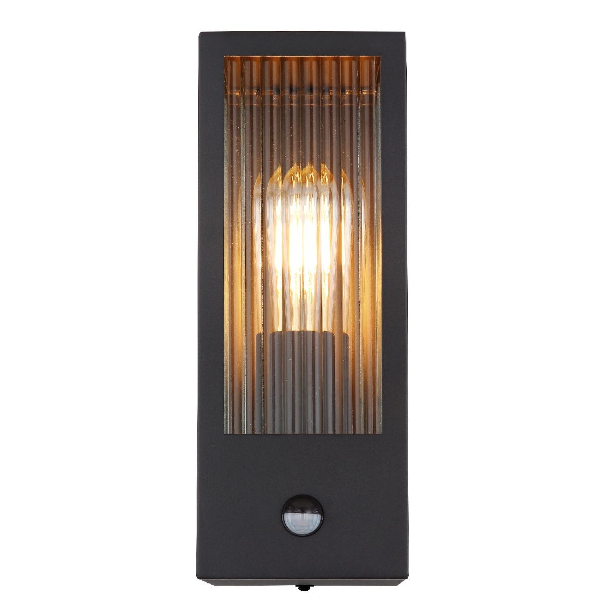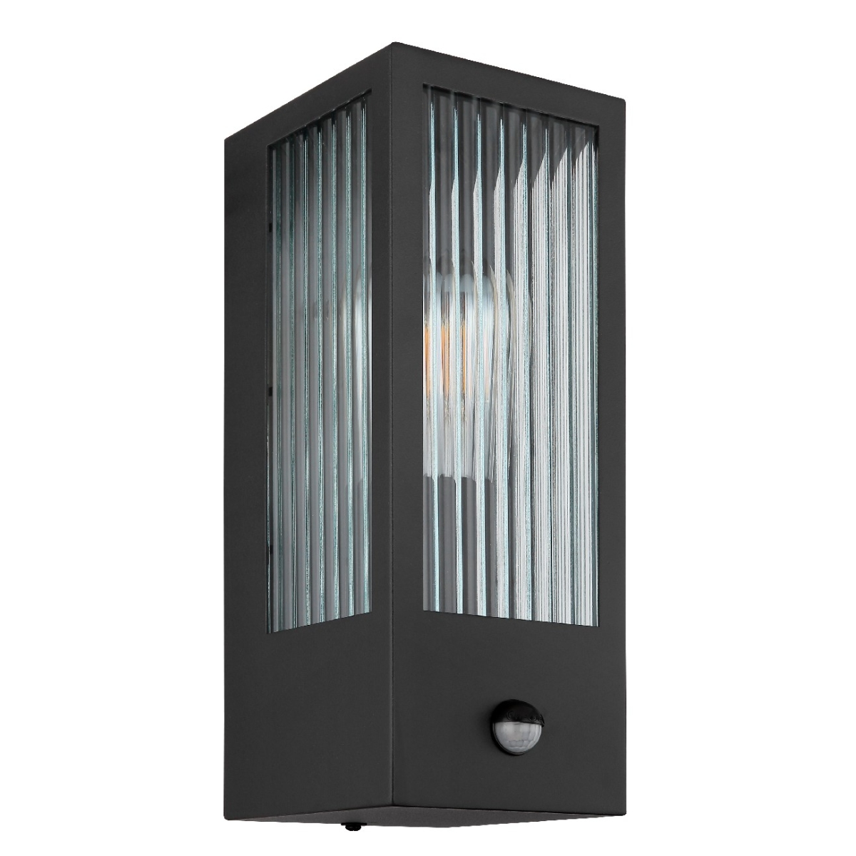 Ova moderna spoljašnja lampa ubeđuje svojim prelepim dizajnom od stakla i metala. Lampa u crnoj boji sastoji se od pravougaonog metalnog okvira (12x32cm) i prelepog staklenog zida sa ukrasima sa svake strane. Grlo E27 vam omogućava da sami odredite boju svetla i jačinu do maksimalne snage od 60 vati. Još jedan vrhunac ove lampe je integrisani senzor, koji reaguje u rasponu od 4-8 m i 110°. IP44 stepen zaštite od prskanja vode osigurava da lampa bude postavljen na otvorenom.