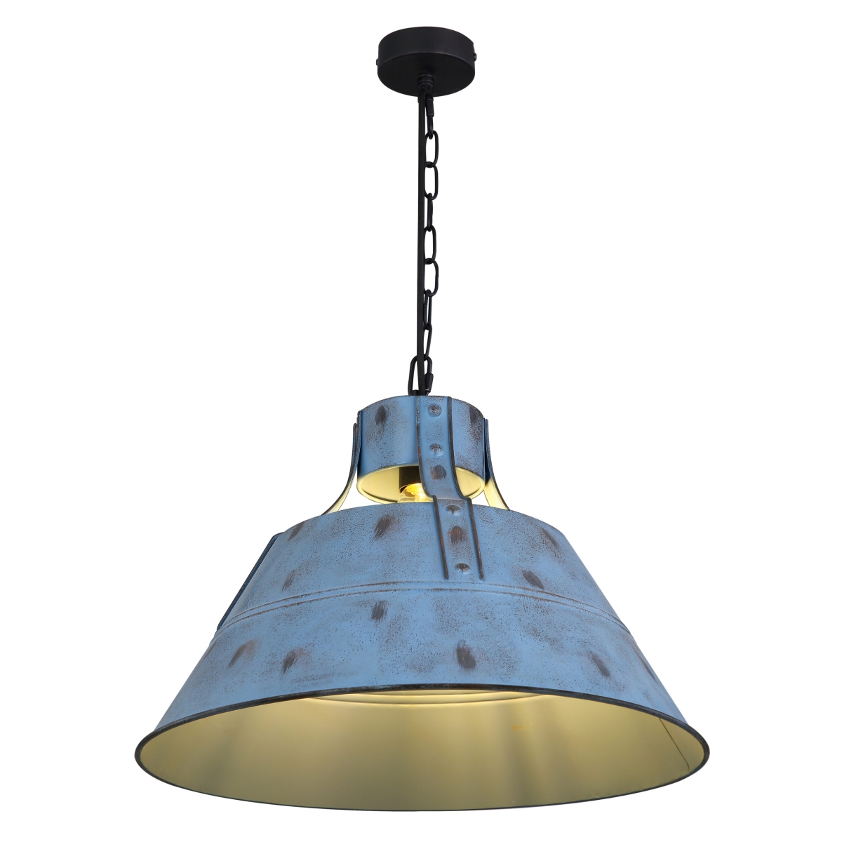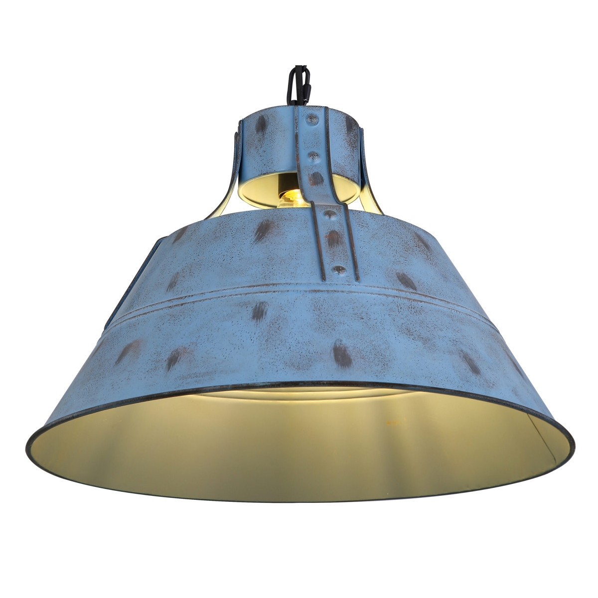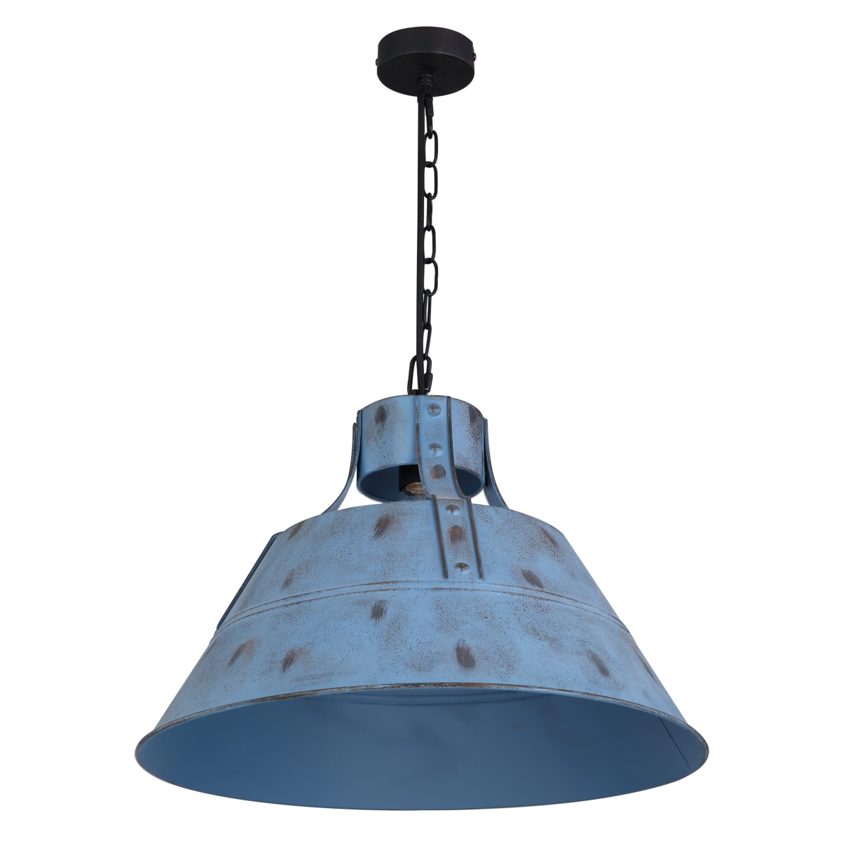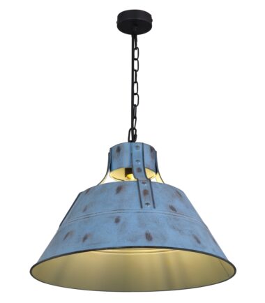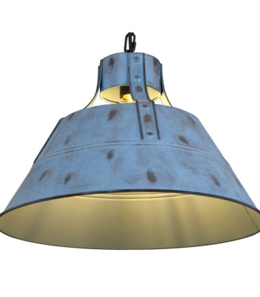 Ova starinska plava metalna visilica serije GUNTHER impresionira svojim velikom abažurom (ø45cm). Sa visinom od 150cm, ova lampa je pogodna za dnevni boravak, trpezariju i spavaću sobu. Zbog E27 grla možete slobodno izabrati sijalicu (max. 60Watt). Zbog njihove dugovečnosti, preporučili bismo LED sijalicu.