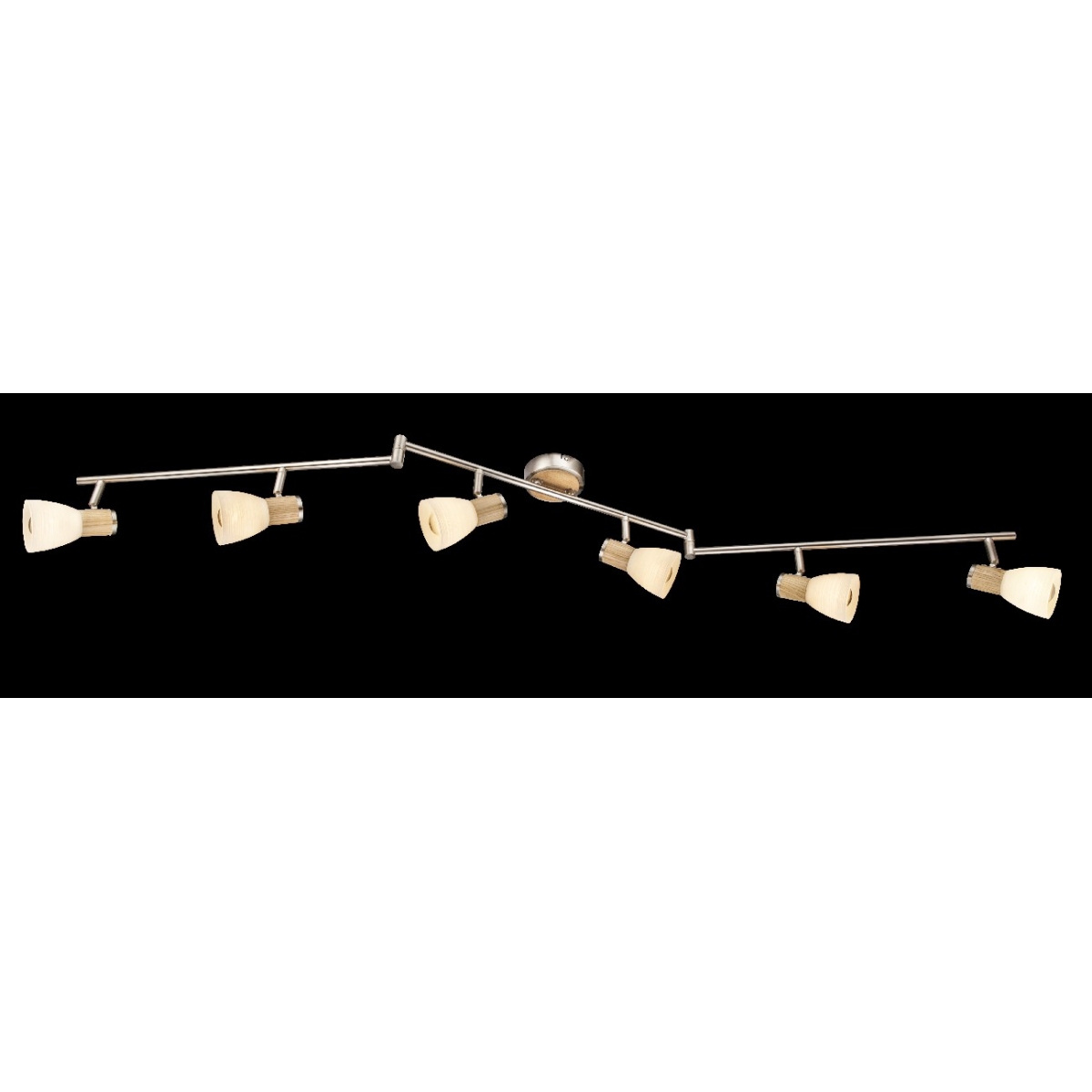 Reflektor sa šest grla, serija plafonskih lampi GYLFI, opremljena je sa šest E14 grla sa najviše 40W i omogućava vam da koristite bilo koji izvor svetlosti. Zbog uštede energije i trajnosti preporučujemo LED sijalice. Kombinacija materijala boje drveta i nikla mat čini ovu plafonsku lampu privlačnom u vašem dnevnom boravku. Šest podesivih spotova, na delimično pokretnim šinama, donose svetlost u najmračnije uglove. Pomoću drugih modela ove serije proizvoda možete upotpuniti sliku u svom prostoru.