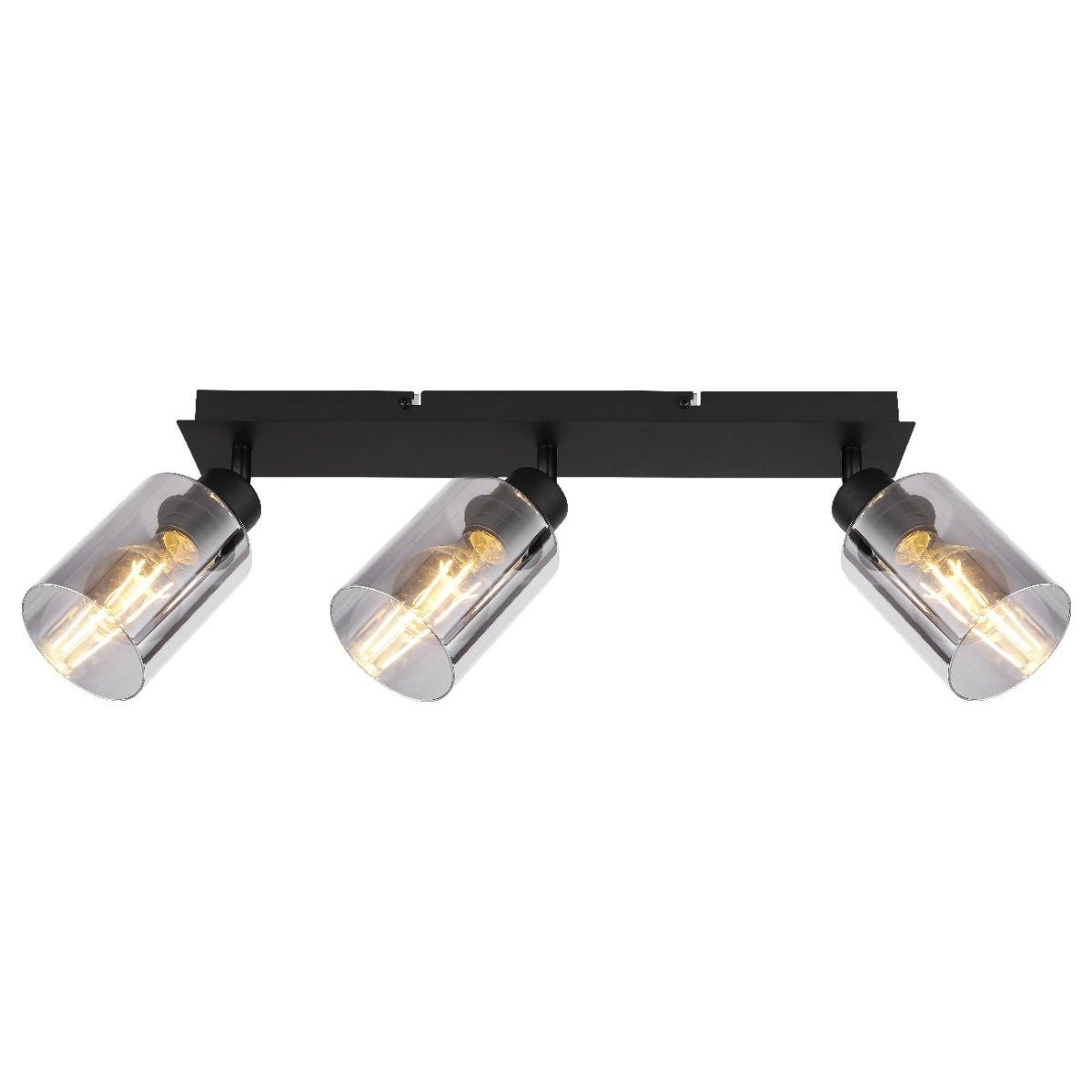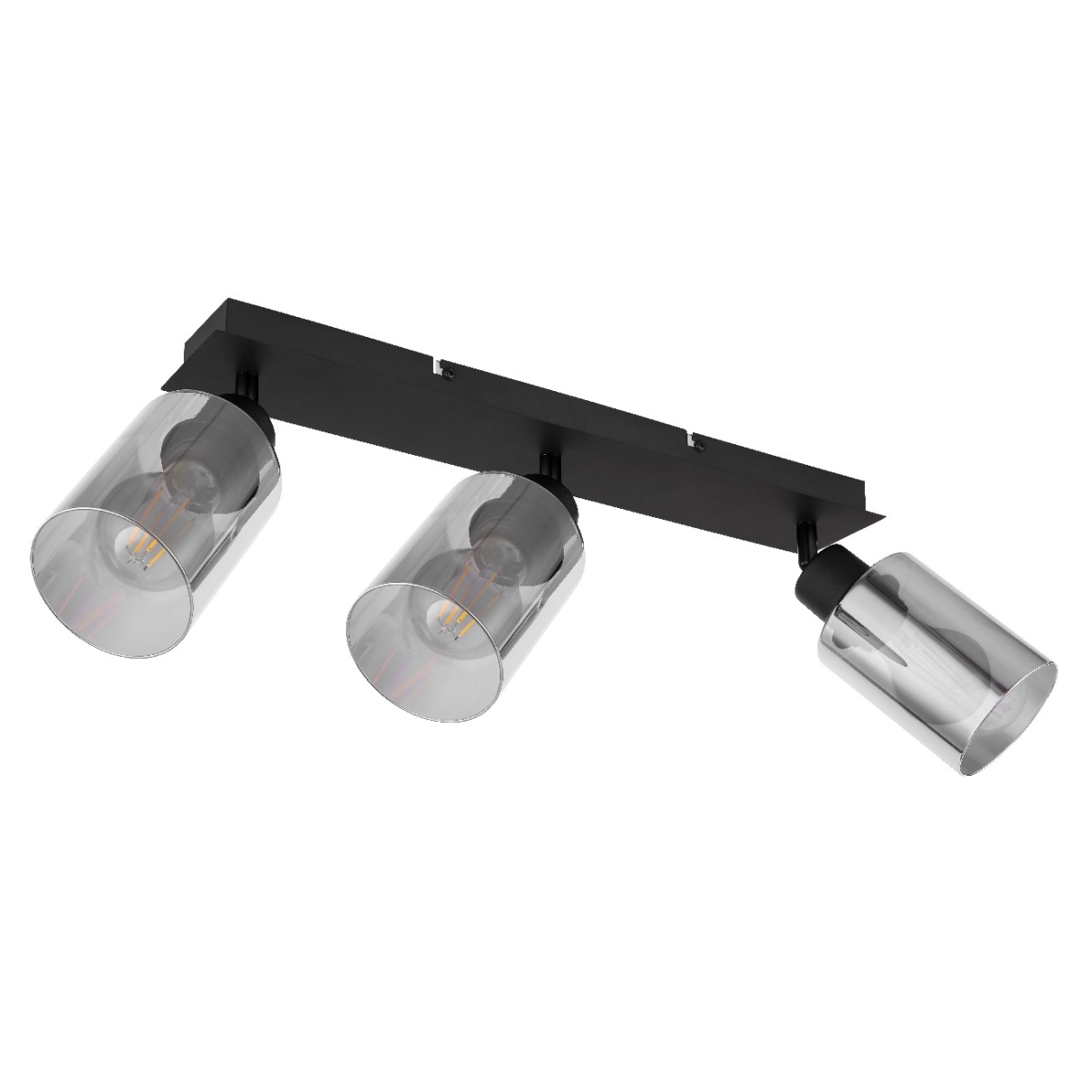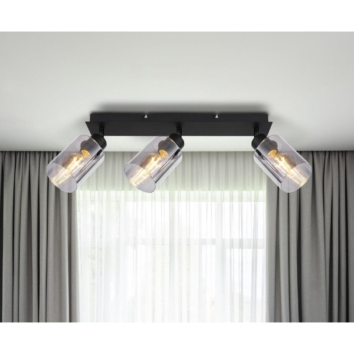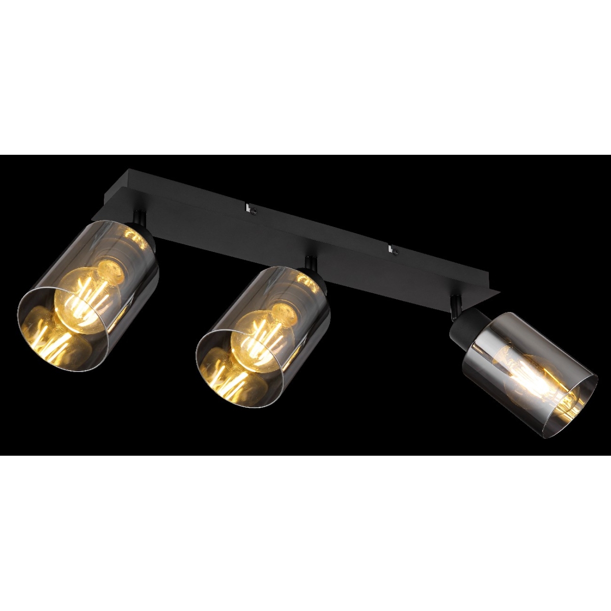 Ovaj prelepi reflektor inspiriše sjajnim dizajnom. Na uskom crno mat metalnom nosaču (47x9cm) postoje tri E27 grla, od kojih je svako opremljeno prelepim cilindričnim abažurom (Ø9cm) u boji dima. Ovo vam ostavlja slobodan izbor, do maksimalne snage od 40 vati, da sami odredite boju svetla i jačinu.