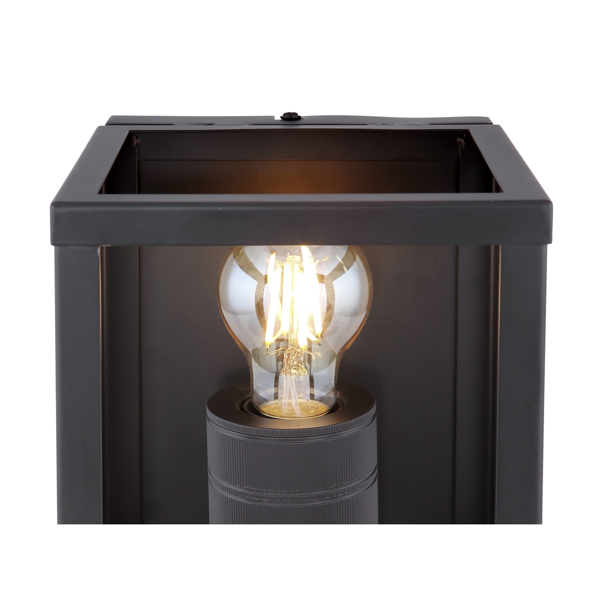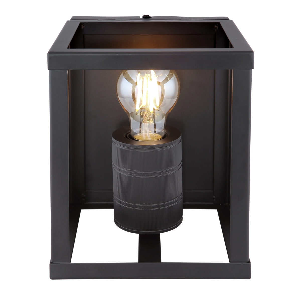Ova zidna lampa HAGAR serije impresionira svojim jednostavnim dizajnom napravljenim od crno-mat metala. Sastoji se od pravougaonog metalnog rama (17x17x20 cm) koji sadrži grlo E27. Možete je opremiti odgovarajućim svetlosnim izvorom po vašem izboru, što vam daje mogućnost da po vašoj želji odredite boju svetla i jačinu. Sa ostalim modelima iste serije možete da kreirate elegantan ambijent u svom enterijeru i upotpunite celokupnu sliku.