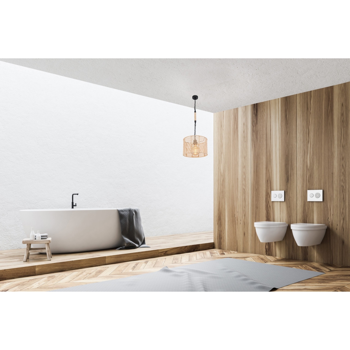 Ova visilica sa imenom HALIA, prodire u sobu sa ukupnom dužinom od 120 cm. Abažur (Ø 31 cm) se sastoji od crnih šipki, koje su prelepo obavijene kanapom od konoplje. Zbog slobodnog izbora izvora svetlosti (E27/max. 60W), možete odrediti intenzitet svetlosti i boju svetla u sopstvenom domu. LED sijalice su posebno pogodne za upotrebu u otvorenim lampama bez stvaranja odsjaja. Zbog njihove dugovečnosti preporučujemo vam korišćenje LED sijalica. Kako bi dovršili celokupnu sliku u kući, preporučujemo korišćenje drugih modela iz ove serije.