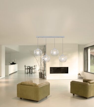 Ova visilica napravljena od hroma ističe se svojim retro dizajnom i istovremeno impresionira K9 kristalima koji se koriste u abažurima. Pored toga, četiri abažura u obliku kruga stvaraju zanimljivu senku na zidovima. Ova visilica ima ukupnu dužinu od 120 cm i garantovano neće ostati neprimećena u vašoj trpezariji i dnevnoj sobi. Zbog slobodnog izbora izvora svetlosti (E27/max. 4 x 60W), možete sami odrediti svetli intenzitet i boju svetla ove lampe . Zbog njihove dugovečnosti preporučujemo vam korišćenje LED sijalica. Kroz druge modele ove serije dodatno možete ulepšati sliku svog životnog prostora.