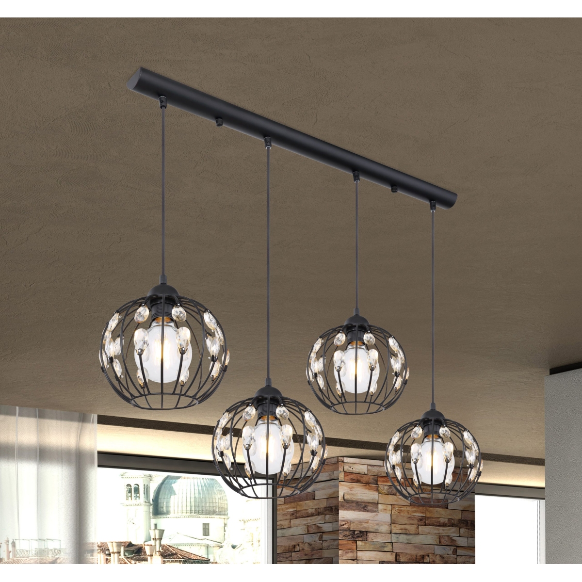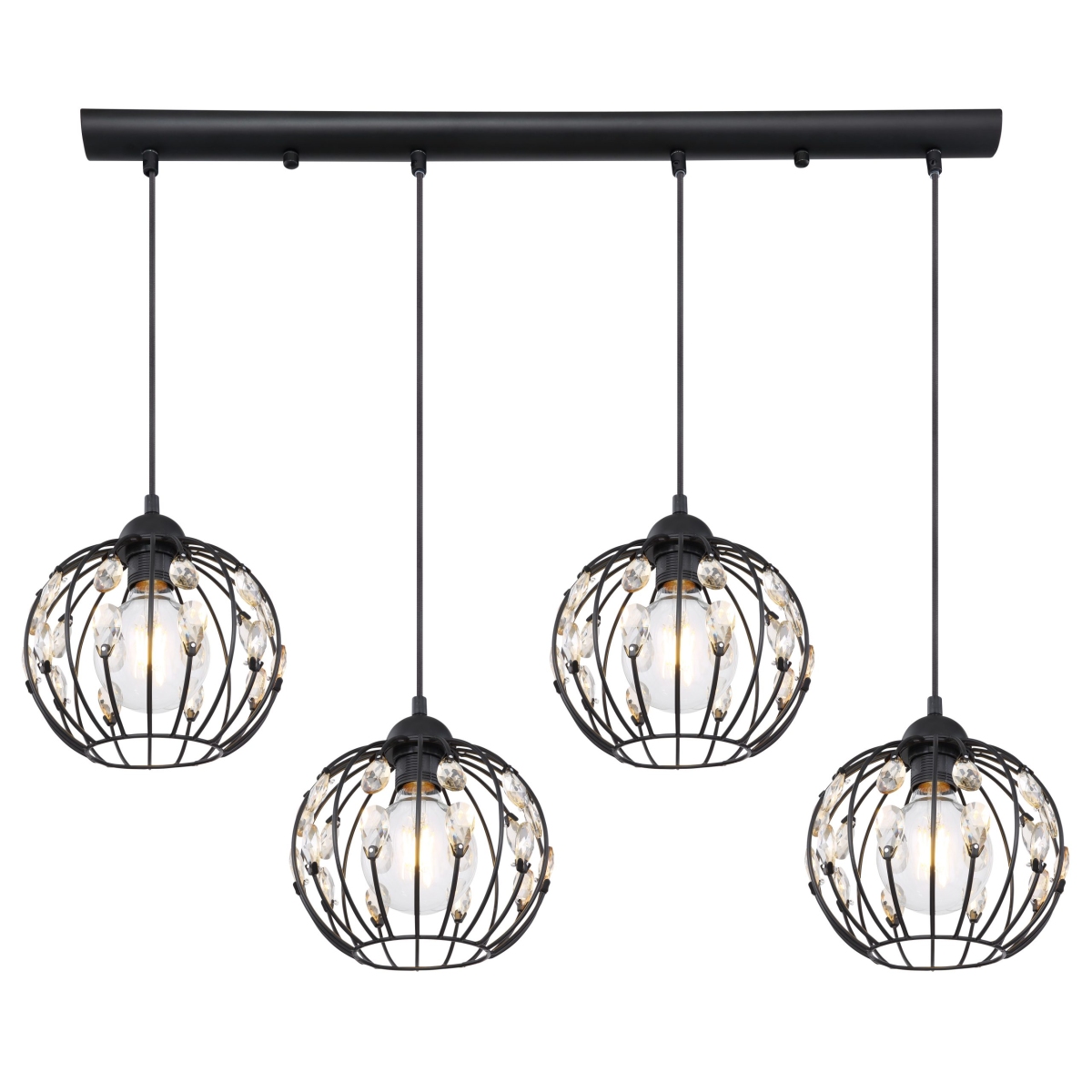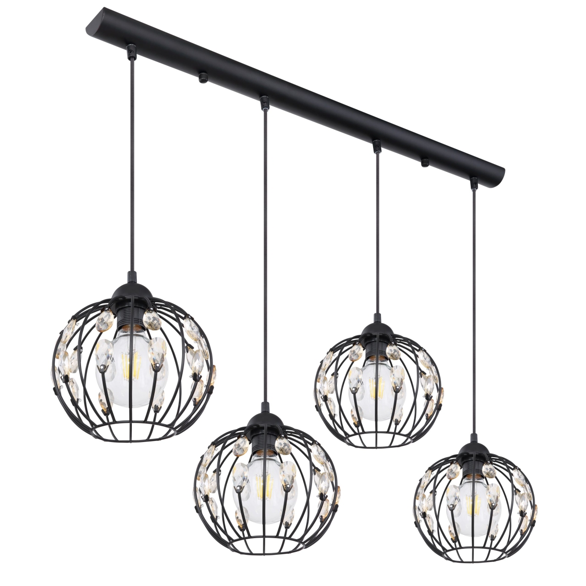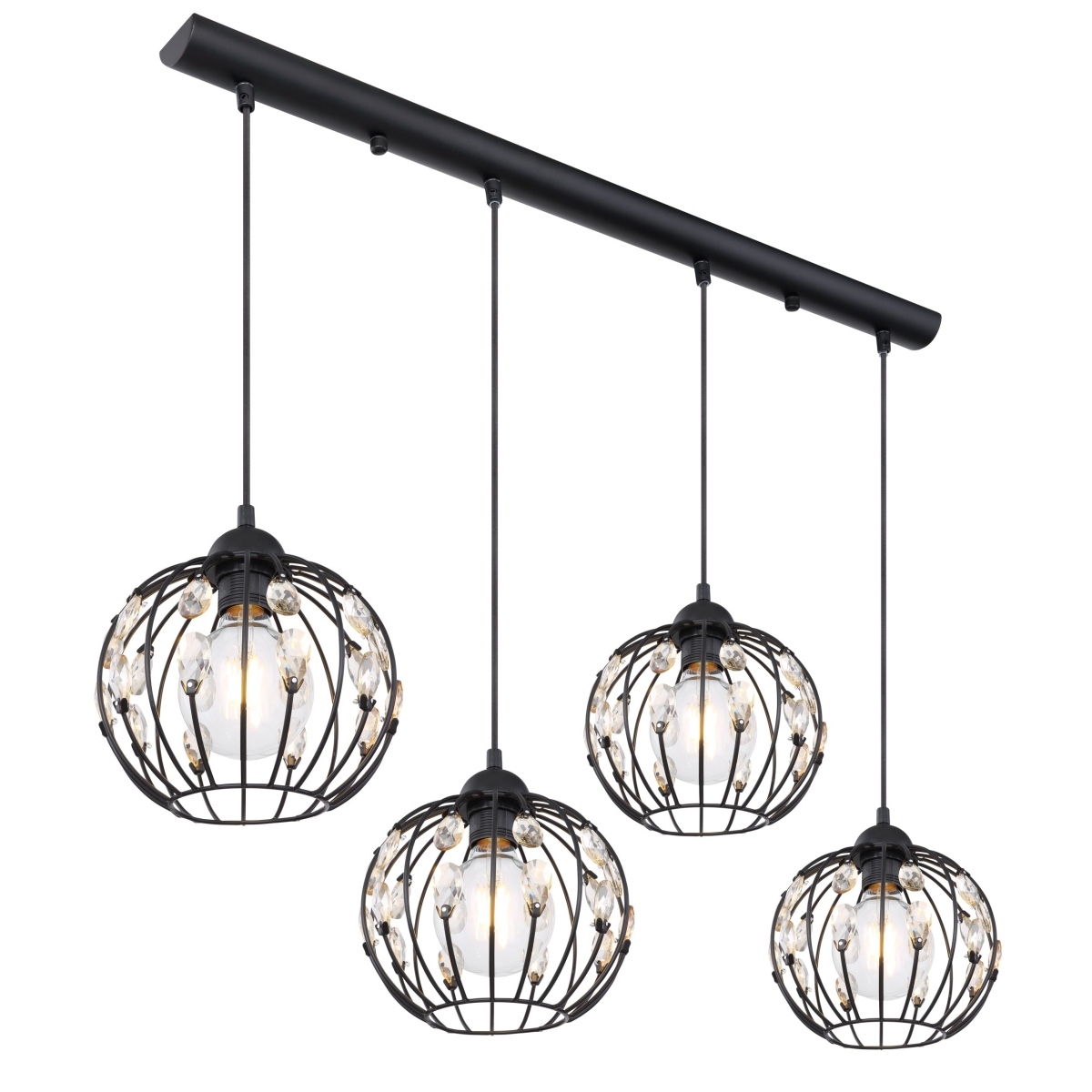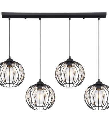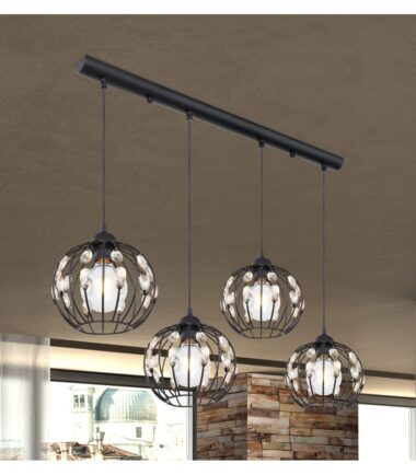 Ova crna mat viseća lampa ističe se svojim retro dizajnom i istovremeno impresionira K9 kristalima koji se koriste u abažurima. Pored toga, četiri abažura u obliku letvi napravljena od crnog metala stvaraju zanimljivu senku na zidovima. Ova visilica ima ukupnu dužinu od 120 cm i garantovano će privlačiti poglede u vašoj trpezariji i dnevnoj sobi. Zbog slobodnog izbora izvora svetlosti (E27/max. 4 x 60W), možete sami odrediti svetli intenzitet i boju svetla sijalice. Zbog njihove dugovečnosti preporučujemo vam korišćenje LED sijalica. Kroz druge modele ove serije dodatno možete ulepšati sliku svog životnog prostora.