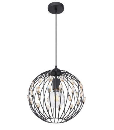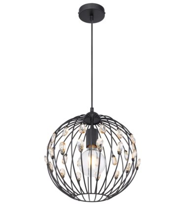 Ova crno mat visilica ističe se svojim retro dizajnom i istovremeno impresionira kristalima K9 koji se nalaze u abažurima (Ø30cm). Pored toga, abažur u obliku kruga napravljen od crnog metala stvara zanimljiv oblik senki na vašim zidovima. Ova lampa ima ukupnu dužinu od 120 cm i garantovano će privlačiti pažnju u vašem trpezarijskom i dnevnom boravku. Zbog slobodnog izbora izvora svetlosti (E27/max. 1 x 60W), možete sami odrediti svetli intenzitet i boju svetla ove lampe. Zbog njihove dugovečnosti preporučujemo vam korišćenje LED sijalica. Drugi modeli u ovoj seriji vam omogućavaju da dodatno ulepšate sliku svog životnog prostora.