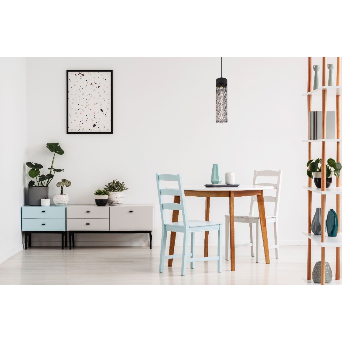Ova viseća lampa iz HANS serije je elegantan dodatak vašem enterijeru. Crni kabl prodire iz okruglog plafonskog nosača, koji se završava na E27 grlu i obezbeđen je cilindričnim metalnim abažurom. Grlo E27 vam daje mogućnost da odredite boju svetla i jačinu do maksimalnog izlaza od 40 vati. Pored toga, tokom instalacije možete podesiti visinu lampe do 120 cm. Sa ostalim modelima iste serije možete da kreirate elegantan ambijent u svom enterijeru i upotpunite celokupnu sliku.