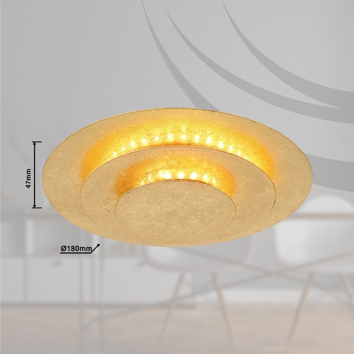 Plafonska lampa serije HEDA ima prečnik od 180 mm i visinu od 47 mm. Napravljena je od metala zlatne boje i opremljna je LED sijalicom snage 18W i naponom od 230V. Lampa ima osvetljenost od 2000 lumena izvora i izlaznu svetlost od 1000 lumena pri temperaturi boje od 3000K. Plafonska lampa je moderan i elegantan element osvetljenja, savršena je za dnevnu sobu, trpezariju, hodnik ili spavaću sobu. Svojom toplom svetlošću stvara prijatnu atmosferu u svakoj prostoriji.