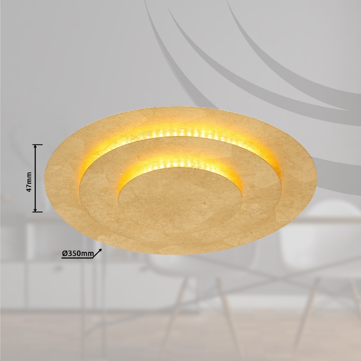 Plafonska lampa serije HEDA ima prečnik od 350 mm i visinu od 47 mm. Napravljena je od metala zlatne boje i opremljna je LED sijalicom snage 24W i naponom od 230V. Lampa ima osvetljenost od 3100 lumena izvora i izlaznu svetlost od 1500 lumena pri temperaturi boje od 3000K. Plafonska lampa je moderan i elegantan element osvetljenja, savršena je za dnevnu sobu, trpezariju, hodnik ili spavaću sobu. Svojom toplom svetlošću stvara prijatnu atmosferu u svakoj prostoriji.