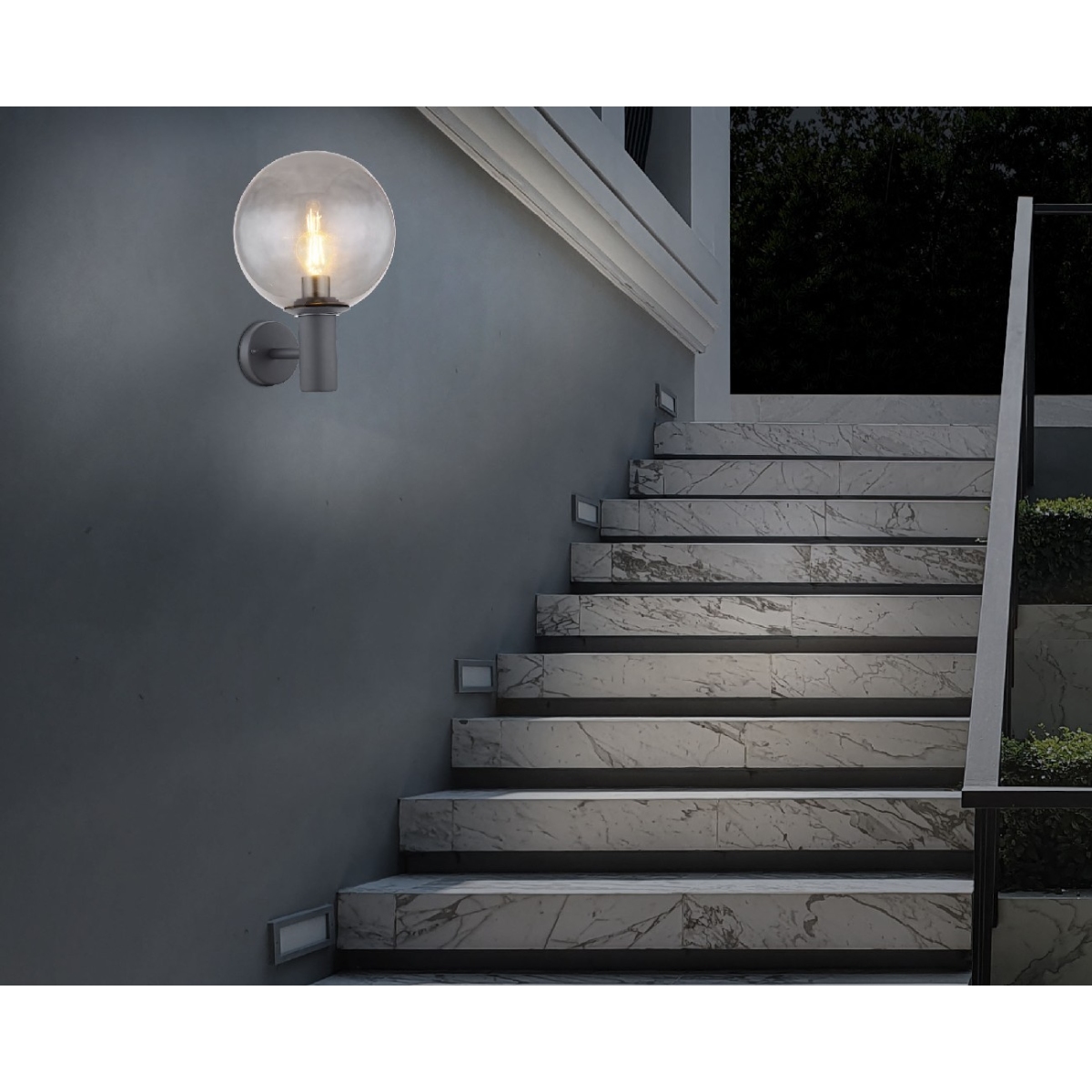 Ova spoljašnja lampa iz serije HEDWIG (ø 25 cm) ističe se svojim jednostavnim dizajnom napravljenim od antracitnog nerđajućeg čelika. Spoljna lampa visoka 37 cm, ima staklenu kuglu u boji dima koja pokriva E27 grlo lampe. One mogu biti opremljene odgovarajućom LED sijalicom po vašem izboru, što vam pruža mogućnost da pojedinačno odredite boju svetla i jačinu. Pomoću ostalih artikala iste serije možete da dovršite celokupnu sliku na otvorenom prostoru.