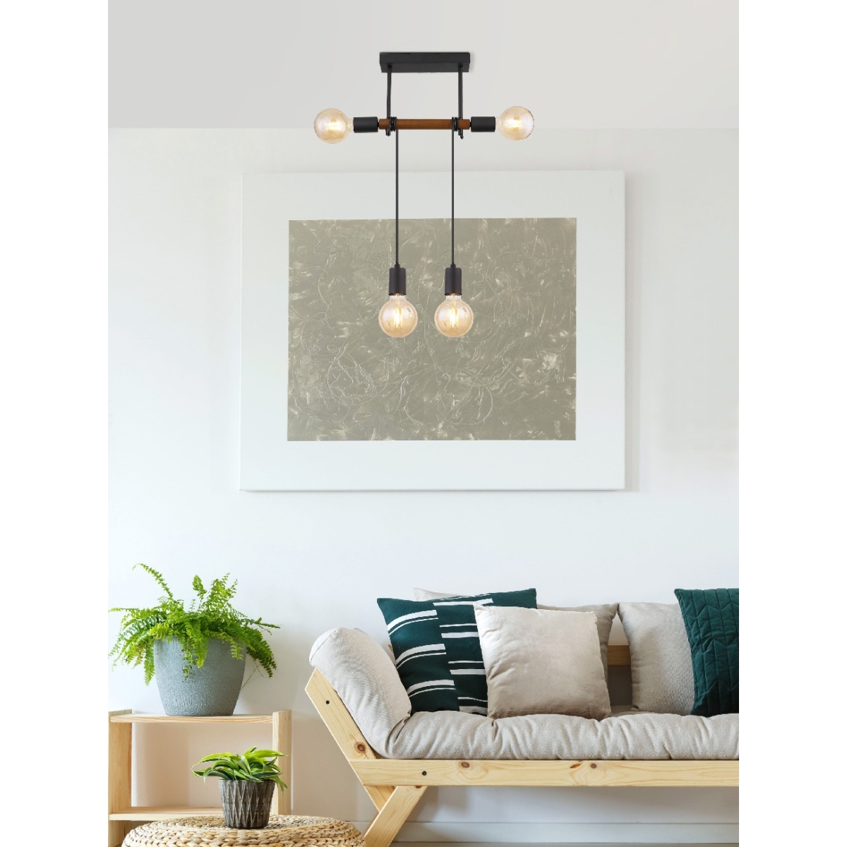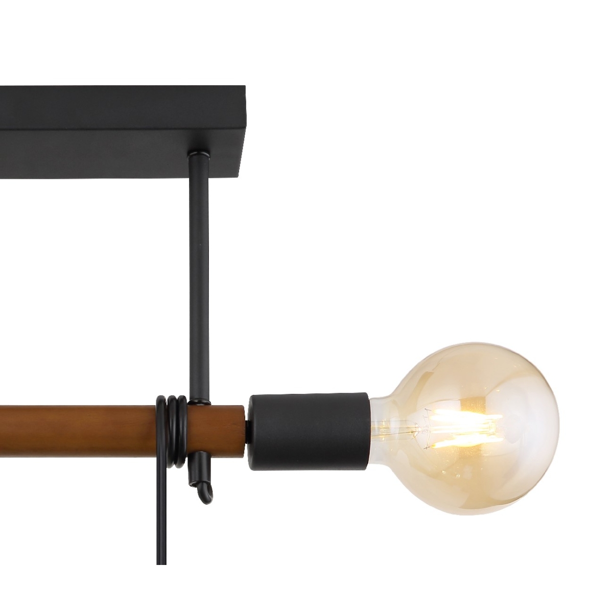 Ova plafonska lampa iz serije HEINRICH je predivan dodatak vašem enterijeru. Plafonska lampa dužine 40 cm sastoji se od braon drvene grane, koja je fiksirana na dve mat crne metalne šipke i obezbeđena sa E27 grlom na oba kraja. Pored toga, šipka je obmotana crnim kablovima, na koje su fiksirana još dve grla . One mogu biti opremljene odgovarajućim sijalicama po vašem izboru, što vam pruža mogućnost da pojedinačno odredite boju svetla i jačinu. Sa nekoliko modela iste serije možete napraviti elegantan ambijent u svoja četiri zida.