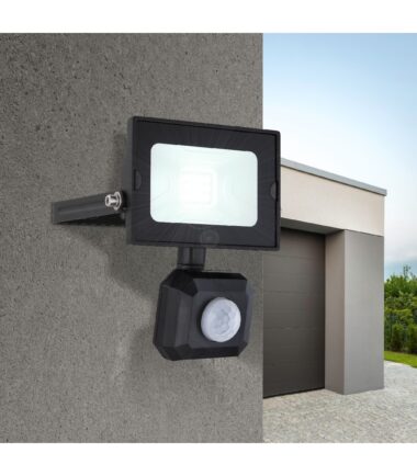 Ovaj crni okretni spoljašnji reflektor napravljen od livenog aluminijuma može se koristiti i kao građevinski reflektor. Zbog ugrđenog detektora pokreta (110°), uglavnom se koristi u prilazima i ulaznim delovima. Zbog svog IP44 stepena zaštite, predodređen je za upotrebu na otvorenom. Sa svojih 10W, 750 lumena, isporučuje jako hladno belo svetlo (6000K).