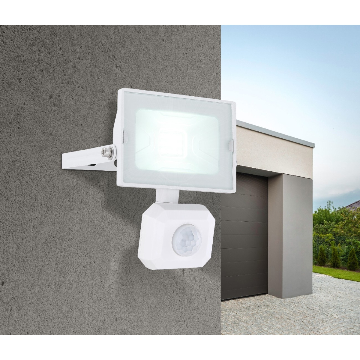 Ovaj beli okretni spoljašnji reflektor napravljen od livenog aluminijuma može se koristiti i kao građevinski reflektor. Zbog ugrđenog detektora pokreta (110°), uglavnom se koristi u prilazima i ulaznim delovima. Zbog svog IP44 stepena zaštite, predodređen je za upotrebu na otvorenom. Sa svojih 10W, 750 lumena, isporučuje jako hladno belo svetlo (6000K).