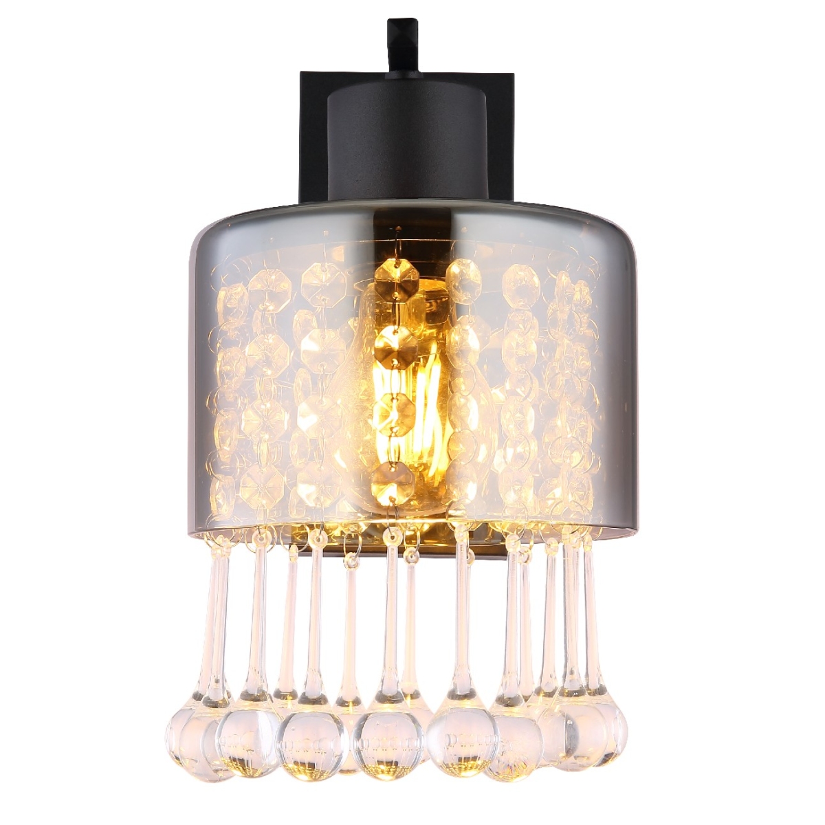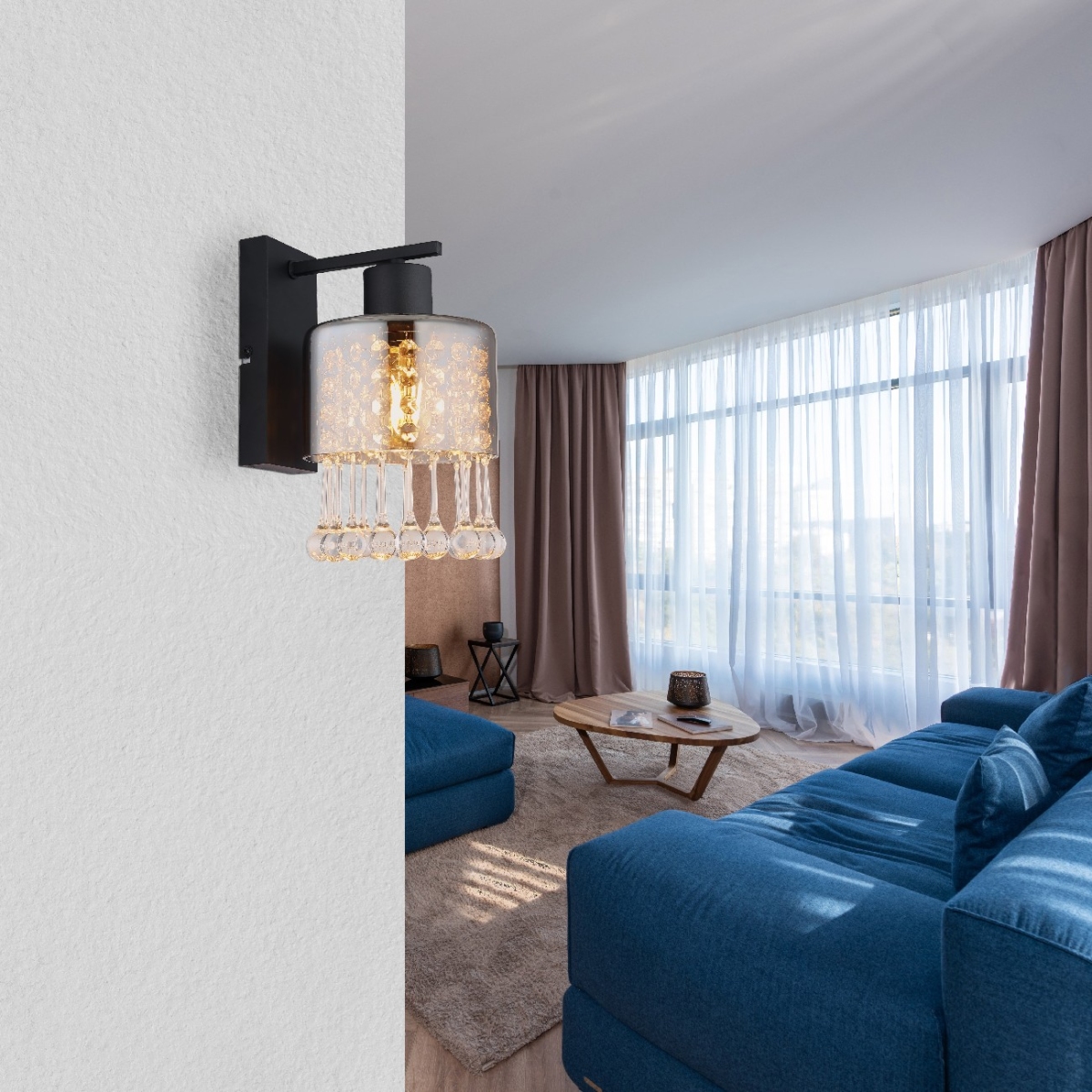 Sa zidnom lampom, serija HENDRY, možete dodati dašak elegancije i tradicije svom domu. Pravougaoni zidni nosač od metala i abažur napravljan od stakla u boji dima čine ovu lampu privlačnom. Abažur je ukrašen glamuroznim kristalom koji visi iznutra. Providne akrilne kapi i stakleni kristali stvaraju blistavu igru svetlosti i prijatnu atmosferu u vašoj prostoriji. Sa širinom od 150 mm i prepustom 193 mm, lampa je idealna za manje prostorije. Lampa je savršena kombinacija tradicionalnog dizajna i modernih detalja. Uz pomoć ostalih artikala iz ove serije možete upotpuniti sliku u vašem domu.