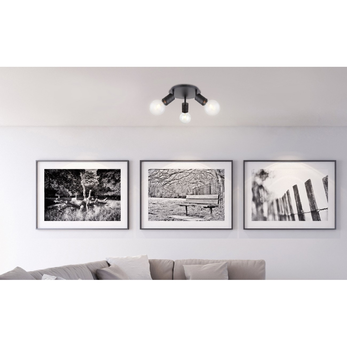 Crni plafonski luster sa 3 grla, HERMINE, predstavlja trendi stil. Jednostavan, ali pun zanimljivih detalja. Zbog slobodnog izbora sijalica (E27 /max. 60W) možete sami odabrati intenzitet svetlosti i boju svetla. Bilo toplo ili hladno belo, nijedna želja ne ostaje neispunjena. Sami reflektori su pokretni i mogu se prilagoditi po potrebi.