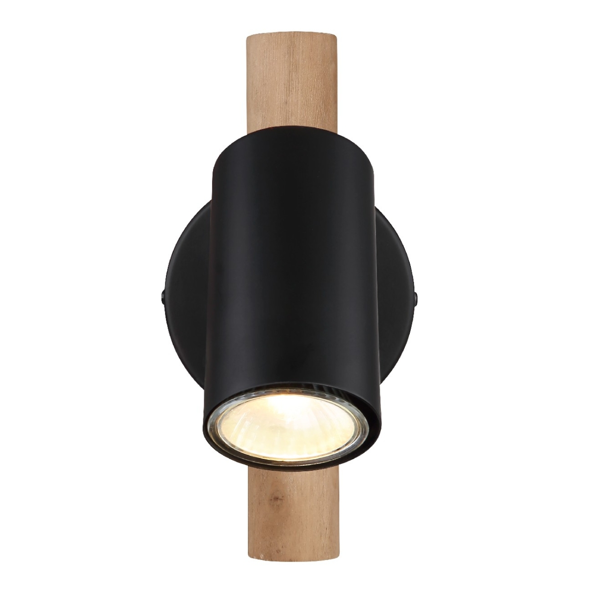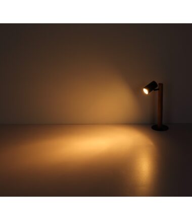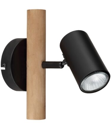 Ovaj jednostavan zidni reflektor ubeđuje sjajnim dizajnom napravljenim od metala i drveta. Drveni stub dugačak 20 cm prodire sa okrugle zidne osnove, na kojoj se nalazi GU10 LED grlo sa prepustom od 20 cm. GU10 LED grlo vam omogućava da odredite boju svetla i jačinu do maksimalne snage od 5 vati. Zbog dugovečnosti i uštede energije preporučujemo korišćenje LED sijalica.