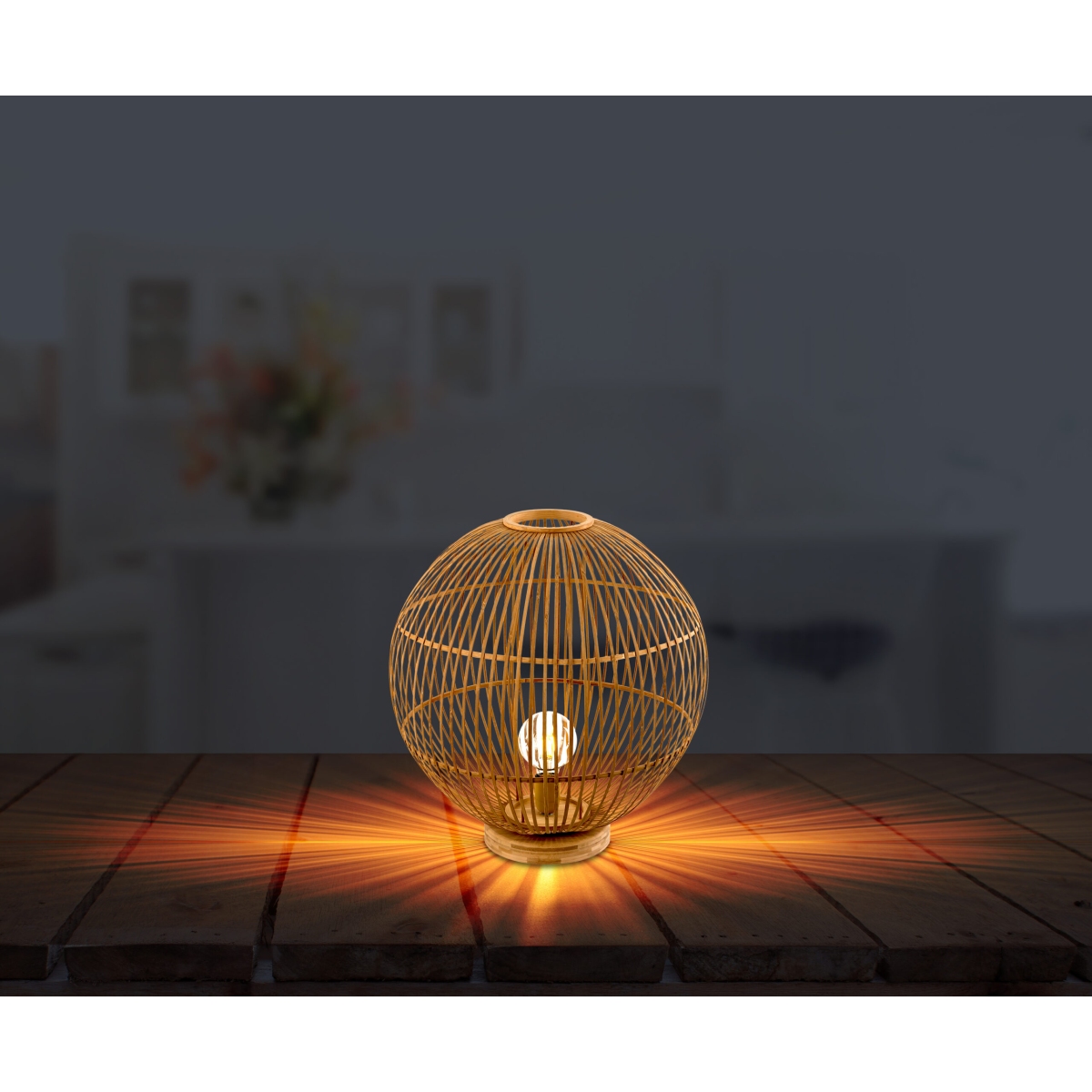 Ova stona lampa sija nežnim svetlom i na taj način pruža opuštajući osećaj u vašoj sobi. Sijalica se prodaje odvojeno. Vidljivo grlo E27, omogućava alternativno korišćenje ukrasne sijalice. Preporučujemo LED sijalicu za još veću održivost. Sa prečnikom od 50 cm, ova bambusova lampa ukrašava svaku prostoriju na veoma poseban način.