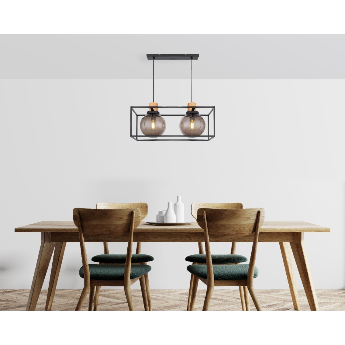 Ovu visilica karakteriše njen jedinstveni dizajn. Svetlost može da zrači kroz četvrtasti metalni abažur sa svih strana. Slobodan izbor sijalice! Lampa ima dva uobičajena E27 grla. Možete koristiti izvor svetlosti do maksimalnog izlaza od 2×20 vati. Za još veću održivost preporučujemo korišćenje LED sijalice. Lampa će sigurno oduševiti svakog vlasnika svojim jedinstvenim šarmom.