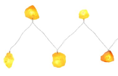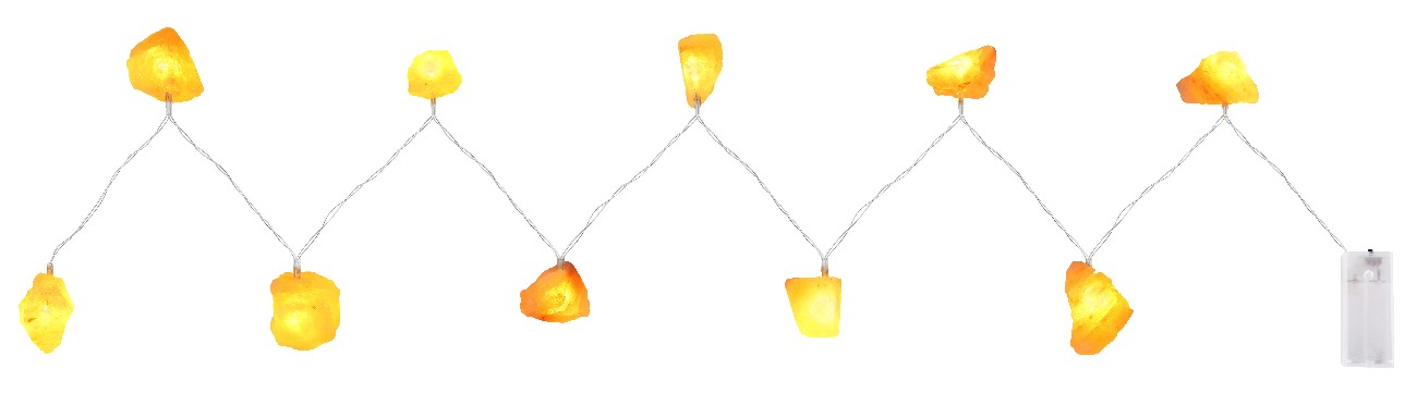 Ovaj niz lampica je pravi mamac za pogled. Ukupno 10 malih kristala soli, svaki sa rastojanjem od 15 cm, pričvršćeno je za plastični kabl dužine 165 cm. Kabl za napajanje dužine 30 cm omogućava promenljiv položaj dekorativne lampe. Ovaj LED niz lampica (bez 2 AA baterije) sa prekidačem daje vašem domu prijatan izgled ne samo u neugodnim danima. Odličan poklon za svaku priliku.