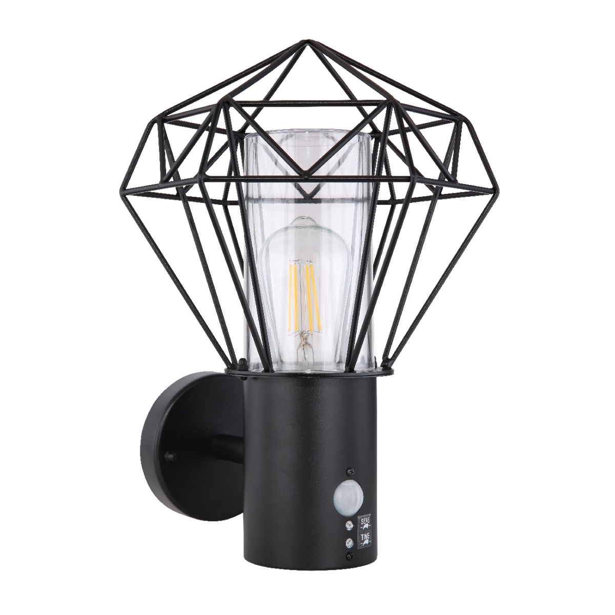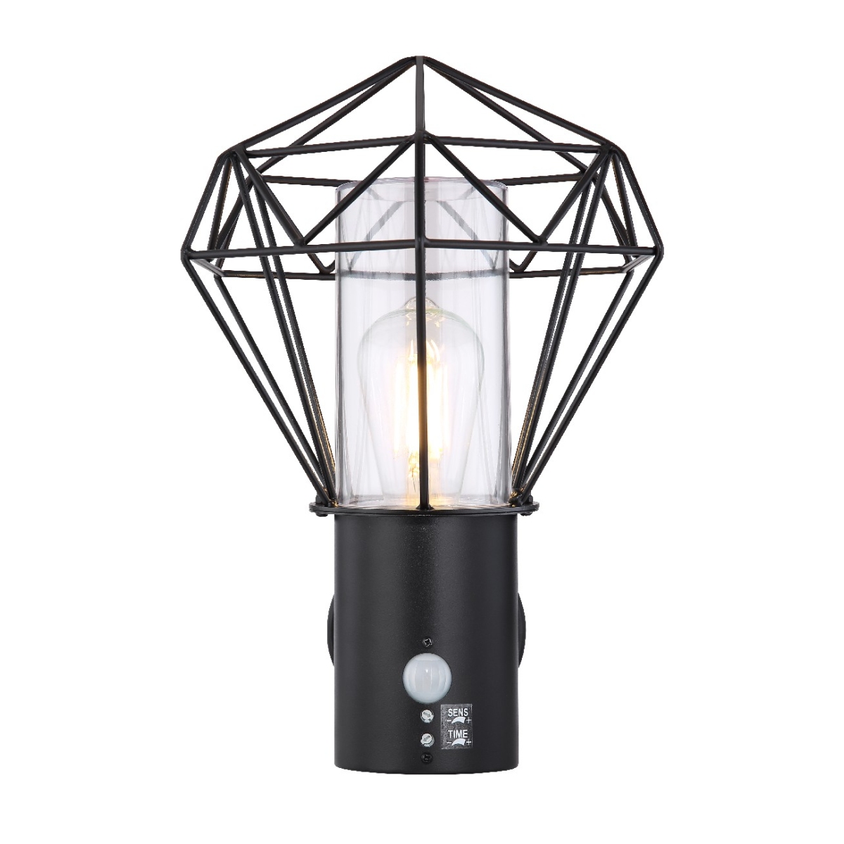 Crna lampa od nerđajućeg čelika savršeno staje na zid vaše kuće. Navlaka je napravljena od prozirne plastike i idealno je pogodna za upotrebu na otvorenom zbog stepena zaštite IP 44. Lampa je široka 22,5 cm, visoka 34 cm i pruža prijatno svetlo kroz metalni abažur u obliku rešetke. Sijalicu sa E27 grlom možete sami odabrati do 15W. Preporučujemo korišćenje LED sijalice za još veću održivost.