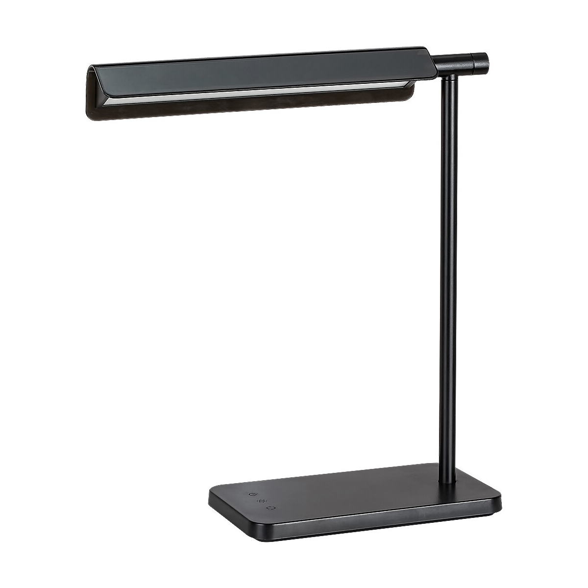 Stona lampa HORUS modernog stila biće savršen izbor u radnoj sobi. Ovaj crni metalni model upotpunjen je crnim plastičnim abažurom i velikom kvadratnom dekorativnom postoljem iste boje. HORUS sadrži ugrađeni LED izvor svetlosti snage 7W, svetlosnog toka od 530 lumena i životnog veka od 25.000 sati. Temperatura boje lampe se može podesiti – možete podesiti 3.000, 4.000 ili 6.500 K, tj. toplo, prirodno ili hladno belo svetlo. Ovo se može uraditi pomoću prekidača na dodir na bazi lampe. Isto važi i za zatamnjenje. Širina ove stone lampe je 290 mm, visina 325 mm, ugao snopa je 70°. Dužina kabla je 1.900mm. Ovo svetlo se može prigušiti, odnosno njegova osvetljenost se takođe može podesiti: možete podesiti željenu osvetljenost pomoću prekidača na dodir (30, 60 ili 100%).