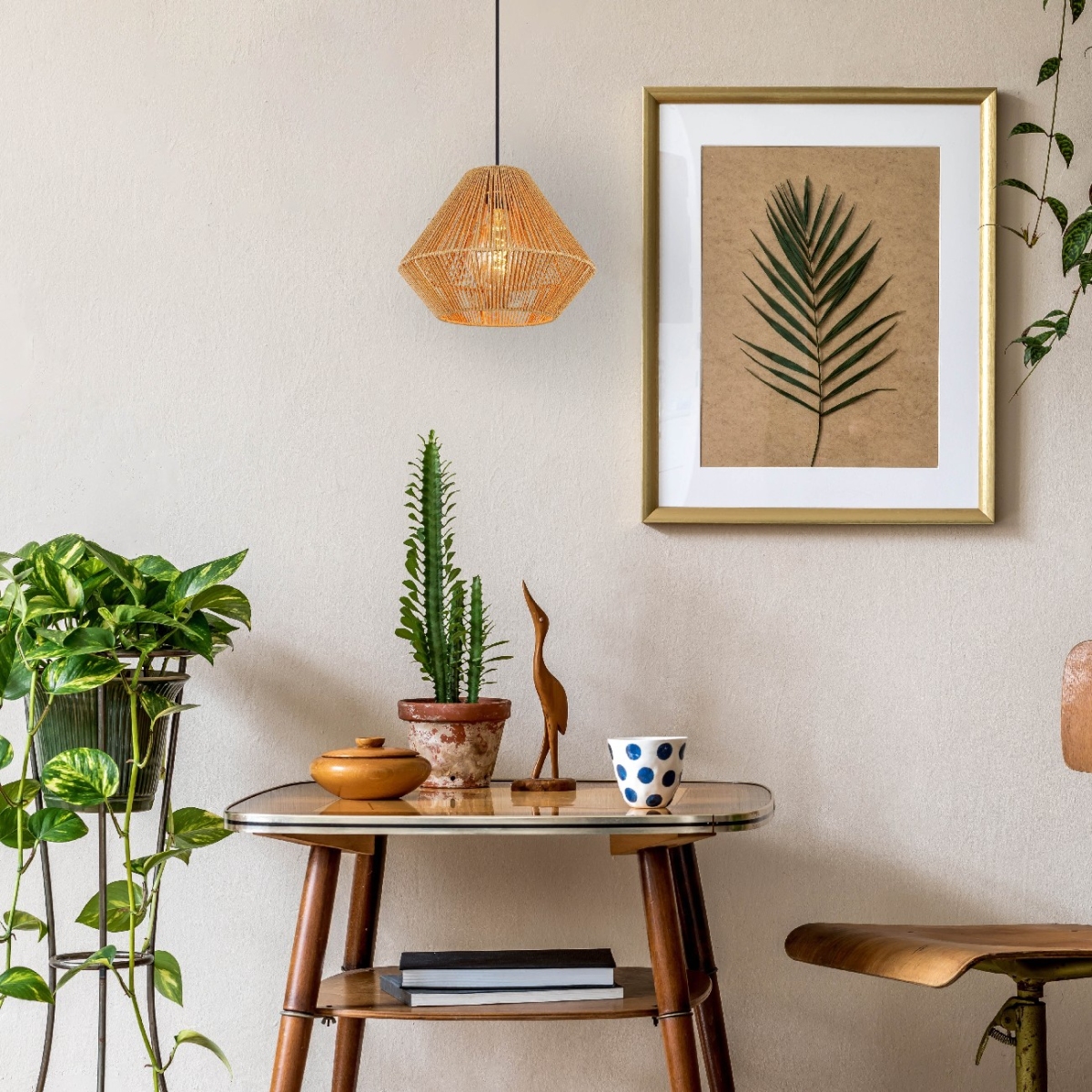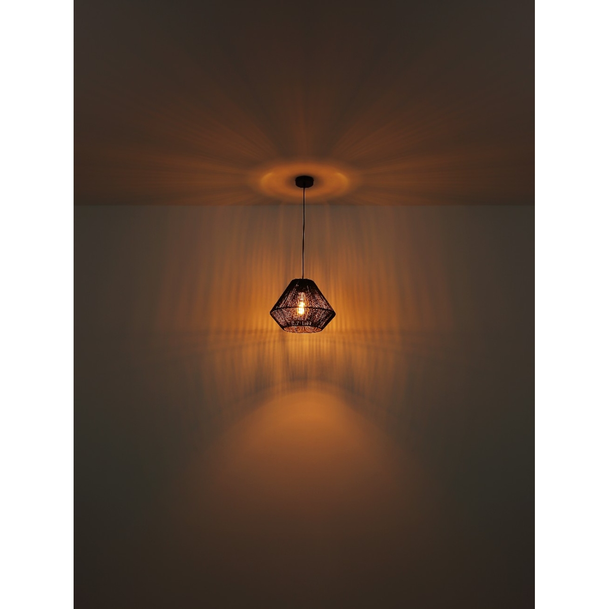 Prelepa visilica HOUDINI serije inspiriše sjajnim dizajnom. Crni kabl dugačak 1,2 m proteže se od okrugle plafonske osnove do grla E27, koje je opremljeno oblikovanim abažurom (Ø 35 cm) napravljenim od prirodnih kanapa u bež boji. Grlo E27 vam omogućava da slobodno odaberete laganu boju i jačinu do maksimalne snage od 15 vati. Zbog dugovečnosti i uštede energije preporučujemo LED sijalice.