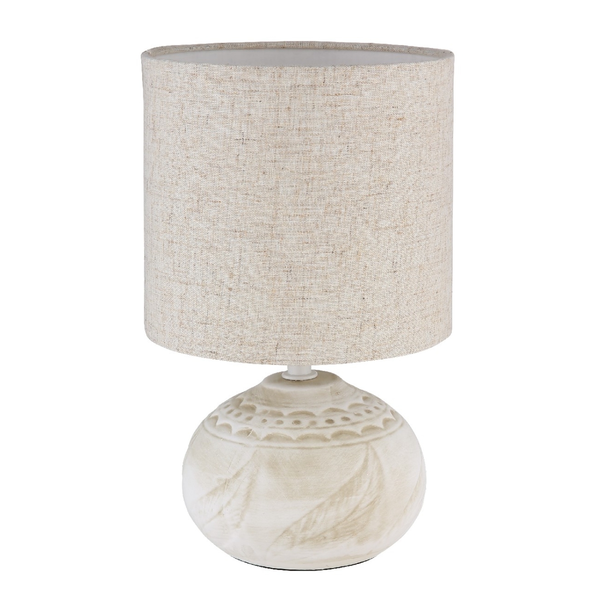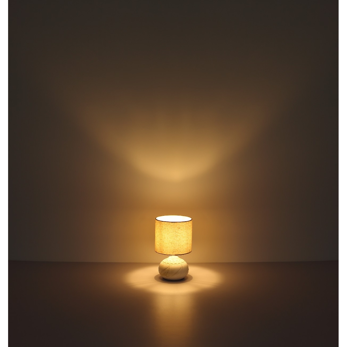 Ova oblikovana stona lampa serije IGA ističe se prelepom kombinacijom boja. Na ovalnoj beloj keramičkoj osnovi, nalazi se E14 grlo, koje je prekriveno abažurom (Ø16,5 cm) napravljenom od tekstila u bež boji. E14 grlo vam omogućava da se odlučite za laganu boju i jačinu do maksimalnog izlaza od 40 vati. Zbog dugovečnosti i uštede energije preporučujemo LED sijalice.