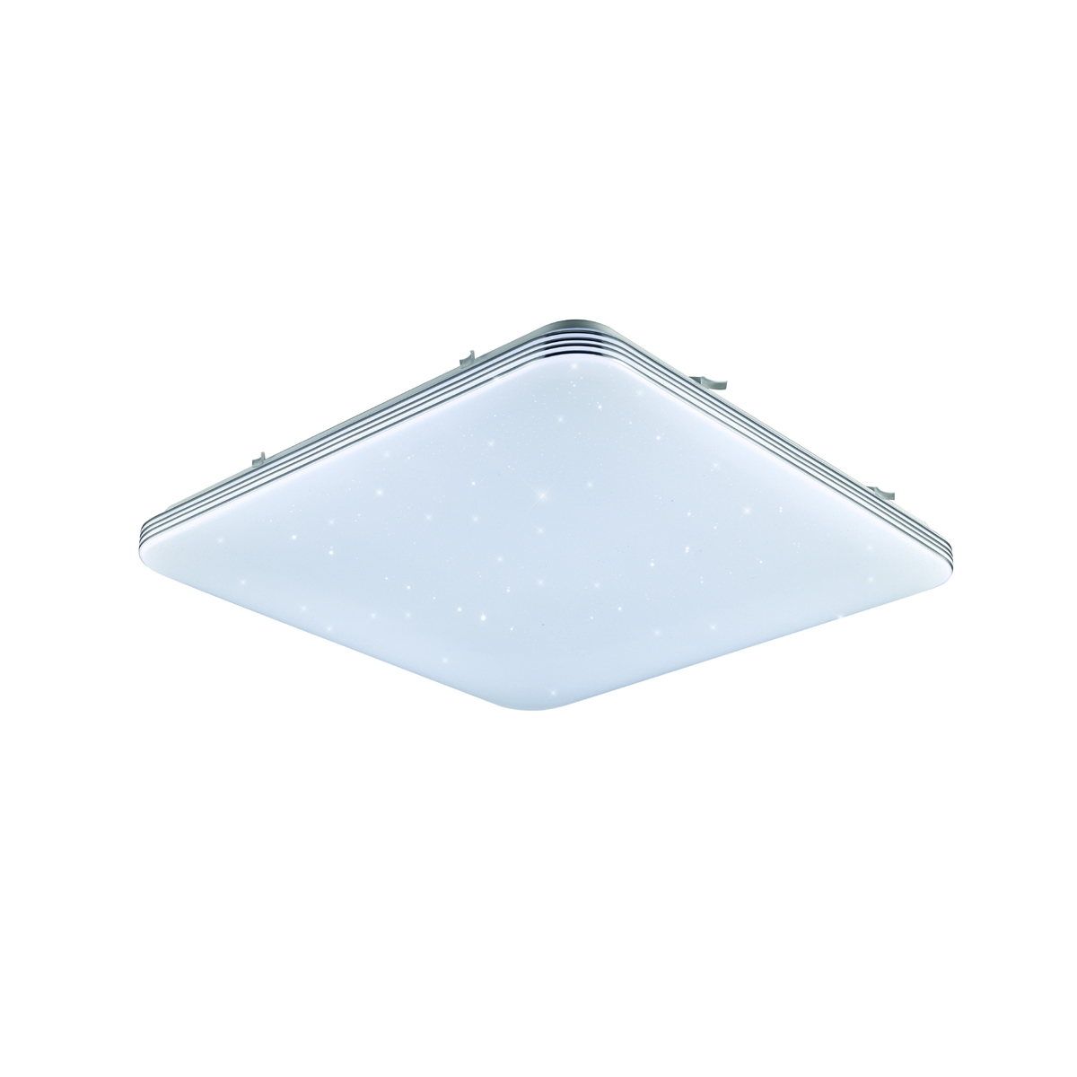 Plafonjera modernog izlgeda i efektom zvezdanog neba, sa integrisanim led sijalicama od 36W i jačine od 2700lm omogućava optimalno osvetljenje prostorije. Uključen je i daljinski upravljač kojim se menja boja svetla u rasponu od tople bele 3000K do hladno bele 5500K.