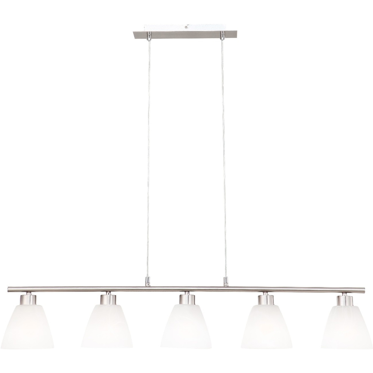 Sa dužinom od 93 cm i visinom od 1,20 metara, ova prelepa dizajnerska viseća lampa, serija ILLIMANI, idealna je za estetski dizajn enterijera i može se optimalno integrisati npr. u dnevnu sobu ili kancelariju. Na pravoj grani je pet belih alabaster stakala, koje imaju pet E14 grla, koja vam omogućavaju slobodan izbor sijalica (max.40W). Preporučujemo LED sijalice zbog njihove trajnosti i uštede energije. Sa ostalim modelima ove serije možete upotpuniti sliku u vašim sobama.