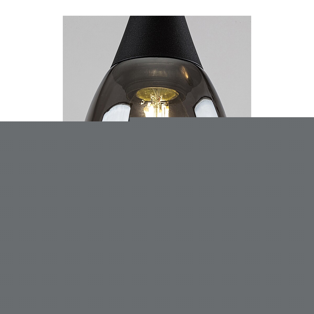 Sa svojim uzdržanim, harmoničnim dizajnom, Ilmari privezak sa 4 sijalice može biti elegantan komad nameštaja mnogih modernih dnevnih soba. Crnu metalnu lampu dopunjuju zatamnjeni stakleni abažuri koji se blago šire nadole i otvoreni na dnu, i duga, duguljasta crna dekorativna osnova. Glave lampi vise na istoj visini jedna pored druge u nizu. Ilmari se može koristiti sa četiri izvora svetlosti, svaki sa snagom do 15W. Tip utičnice je E27. Kako se privezak prvenstveno preporučuje u dnevnoj sobi, predlažemo da ga koristite sa sijalicama koje zrače prirodno belo svetlo koje vam pomažu da postignete moderan, čist efekat. Pošto se izvori svetlosti dobro vide čak i kroz zatamnjene staklene abažure, izgled ovog visećeg svetla možete učiniti još uzbudljivijim pomoću sijalica nekonvencionalnog oblika. Svetiljka ima sledeće dimenzije: širina 720 mm, prečnik svakog abažura 100 mm, rastojanje od plafona 1.200 mm. Ilmari privezak sa 4 sijalice se isporučuje bez izvora svetlosti.