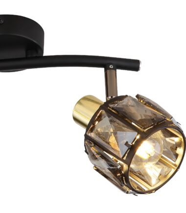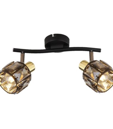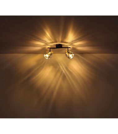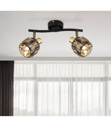 Ova plafonska lampa INDIANA serije ubeđuje svojim elegantnim dizajnom. Zakrivljena crna mat metalna šipka dužine 28 cm prodire iz okruglog plafonskog nosača, na kojem se nalaze ukupno dva E14 grla, svaka sa oblikovanim staklenim kristalnim abažurom. Grla E14 vam omogućavaju da sami odredite boju svetla i jačinu do maksimalnog izlaza od 40 vati. Zbog dugovečnosti i uštede energije preporučujemo LED sijalice.