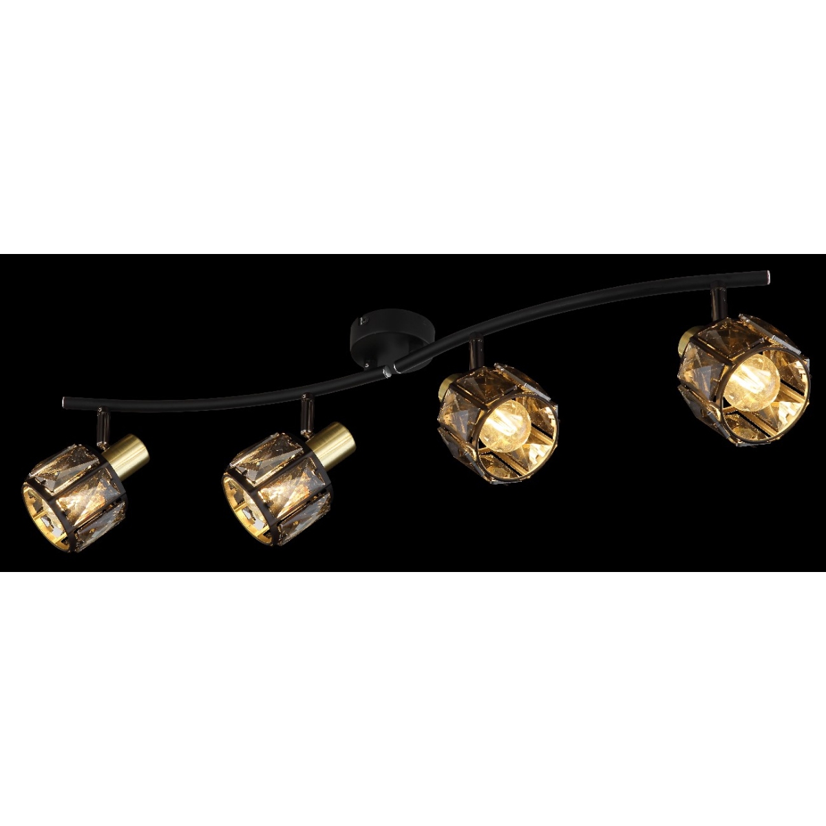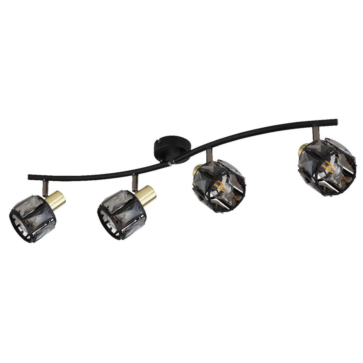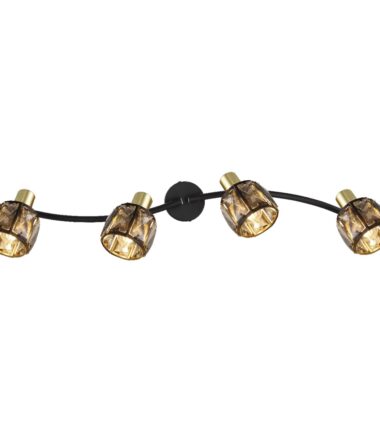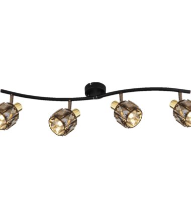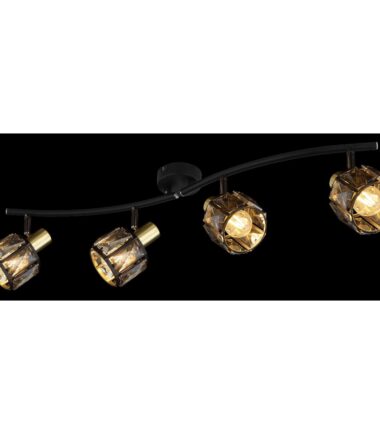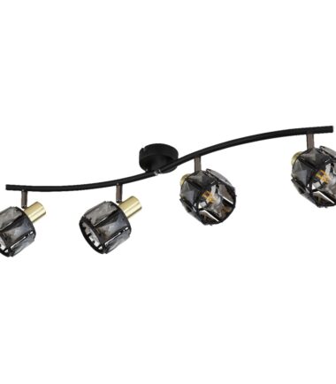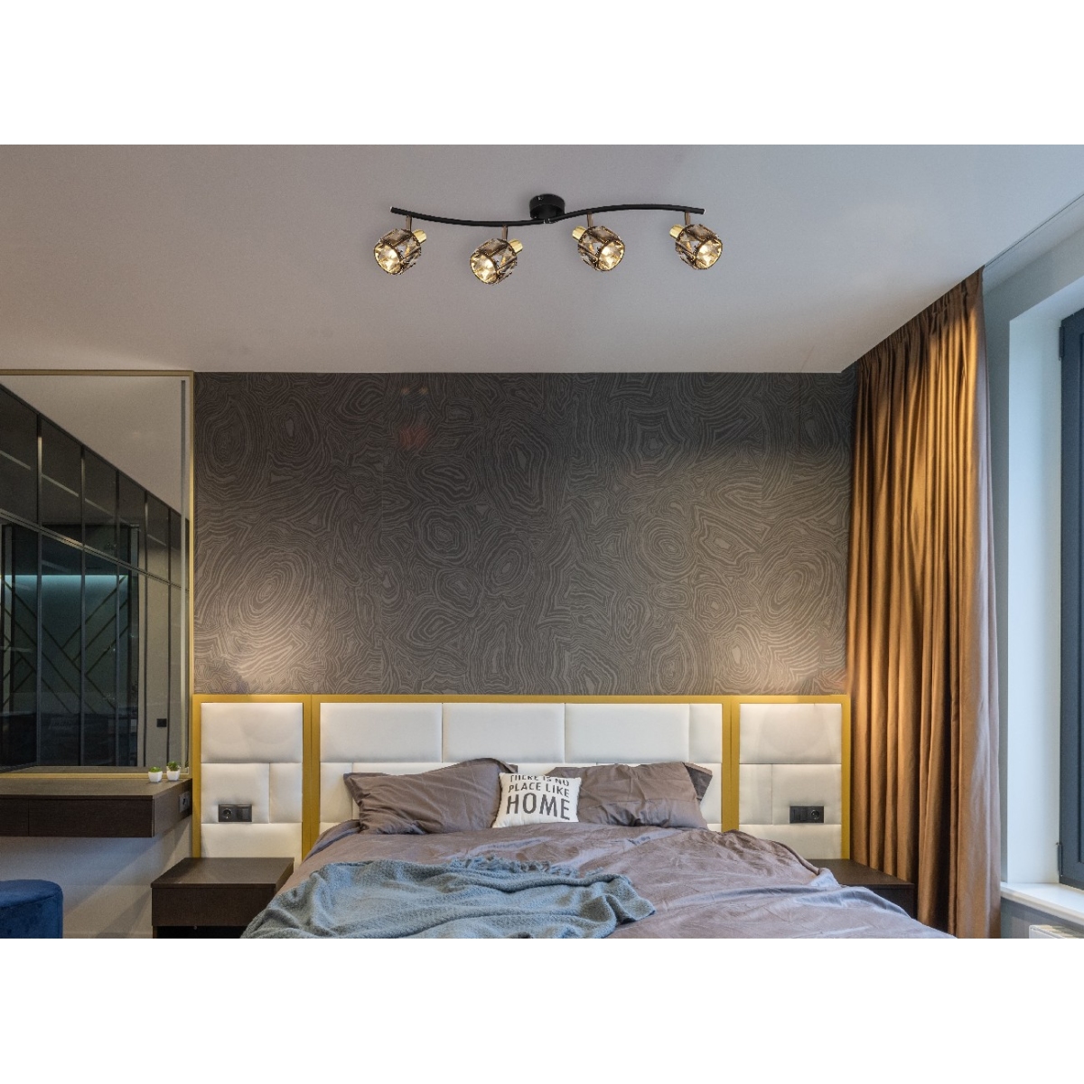 Ova plafonska lampa INDIANA serije ubeđuje svojim elegantnim dizajnom. Zakrivljena crna mat metalna šipka dužine 70 cm prodire iz okruglog plafonskog nosača, na kojem ima ukupno četiri E14 grla, od kojih svako ima oblikovanu staklenu kristalnu kuglu. Grla E14 vam omogućavaju da sami odredite boju svetla i jačinu do maksimalnog izlaza od 40 vati. Zbog dugovečnosti i uštede energije preporučujemo LED sijalice.
