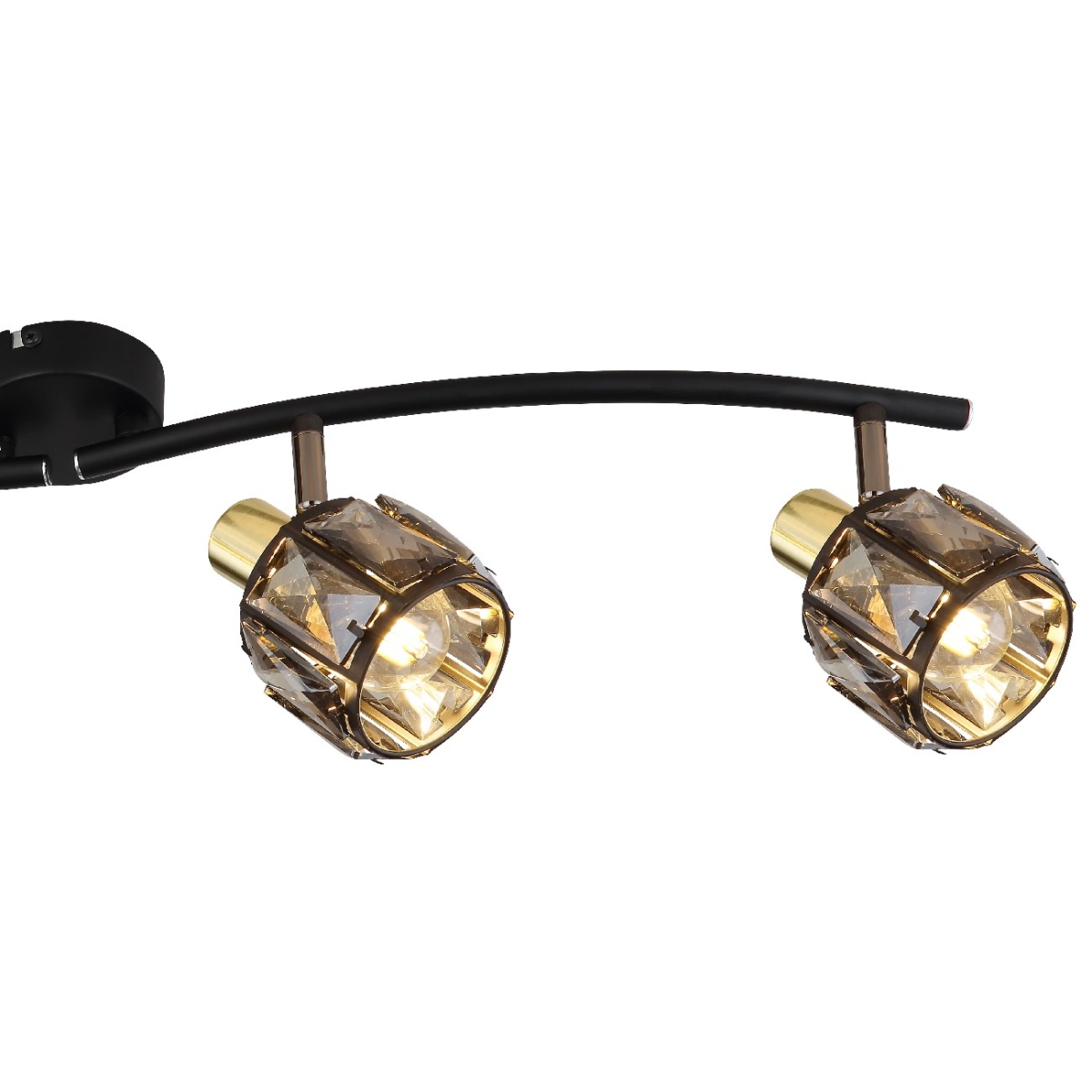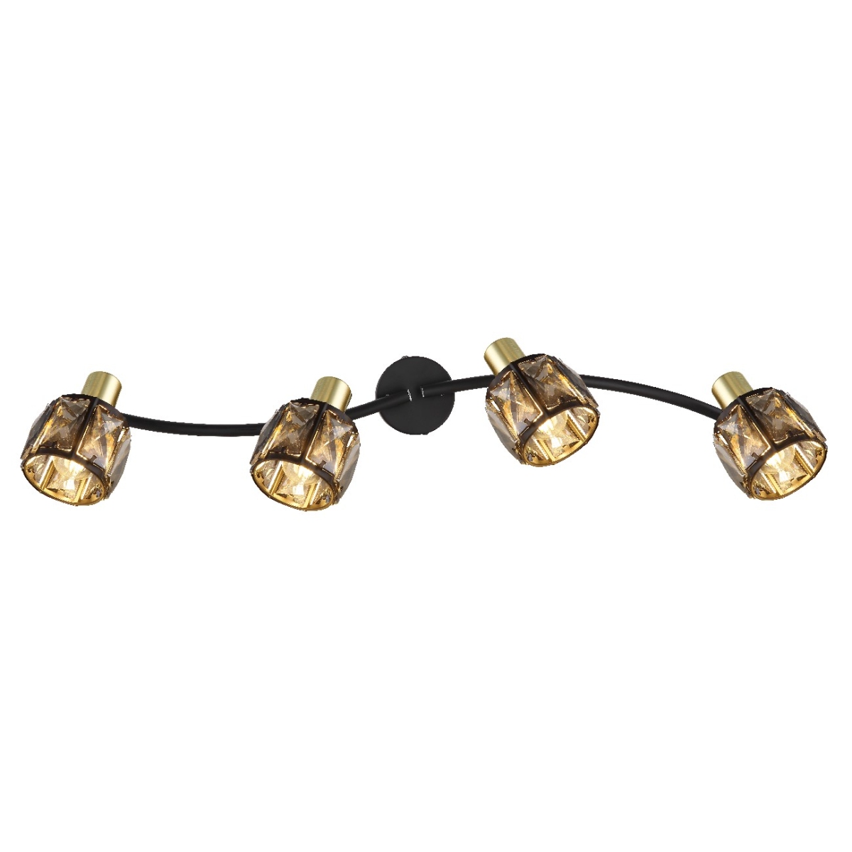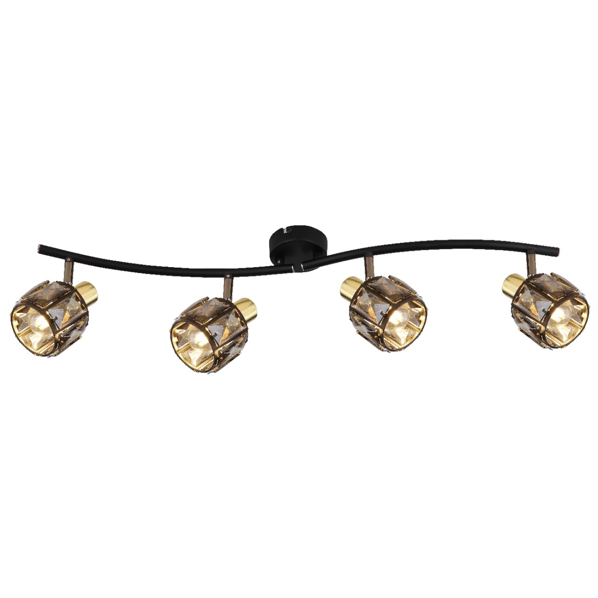 Ova plafonska lampa INDIANA serije ubeđuje svojim elegantnim dizajnom. Zakrivljena crna mat metalna šipka dužine 70 cm prodire iz okruglog plafonskog nosača, na kojem ima ukupno četiri E14 grla, od kojih svako ima oblikovanu staklenu kristalnu kuglu. Grla E14 vam omogućavaju da sami odredite boju svetla i jačinu do maksimalnog izlaza od 40 vati. Zbog dugovečnosti i uštede energije preporučujemo LED sijalice.