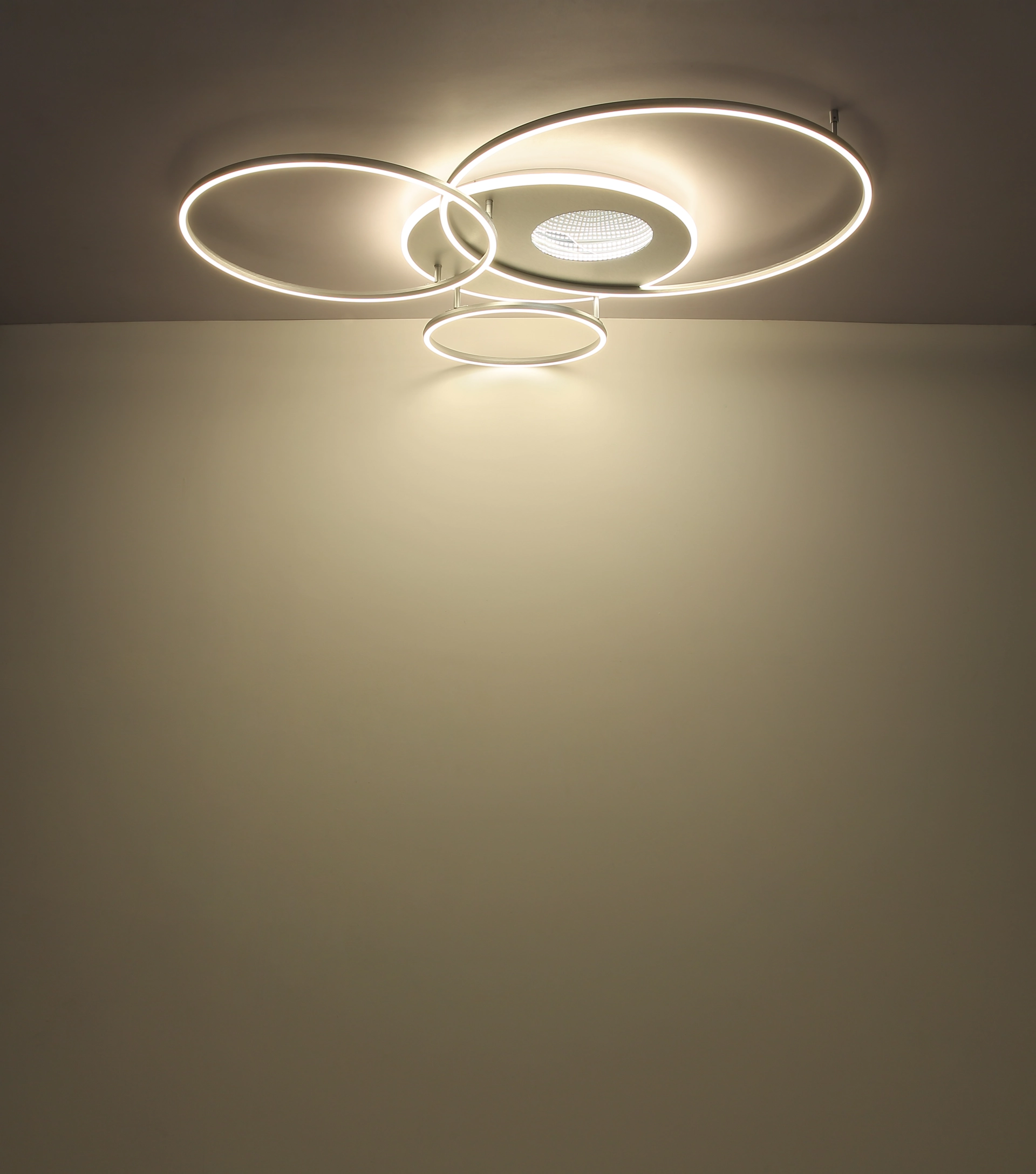 Pravougaona plafonska lampa CEILING LAMP BRUSHED ALUMINIUM GOLD-COLOURED impresionira svojim modernim dizajnom sa 4 ofset prstena raspoređena jedan pored drugog. Telo napravljeno od mat brušenog aluminijuma zlatne boje i aluminijuma antracit boje daje lampi plemenit izgled. Abažur je napravljen od opal akrila sa 3D efektom ogledala koji stvara posebnu igru svetlosti. Ova dizajnerska viseća lampa opremljena je daljinskim upravljačem koji vam omogućava da pojedinačno kontrolišete osvetljenje. Može se prigušiti, nudi nekoliko nivoa preko zidnog prekidača, omogućava vam fiksiranje boja i ima praktičnu funkciju memorije, kao i noćno svetlo. Sa dimenzijama od 1264 mm dužine i 1053 mm širine, kao i izlazom od 4747 lumena i podesivim CCT od 2700K do 6500K, CEILING LAMP BRUSHED ALUMINIUM GOLD-COLOURED pruža svetlo i atmosfersko osvetljenje u vašoj sobi.