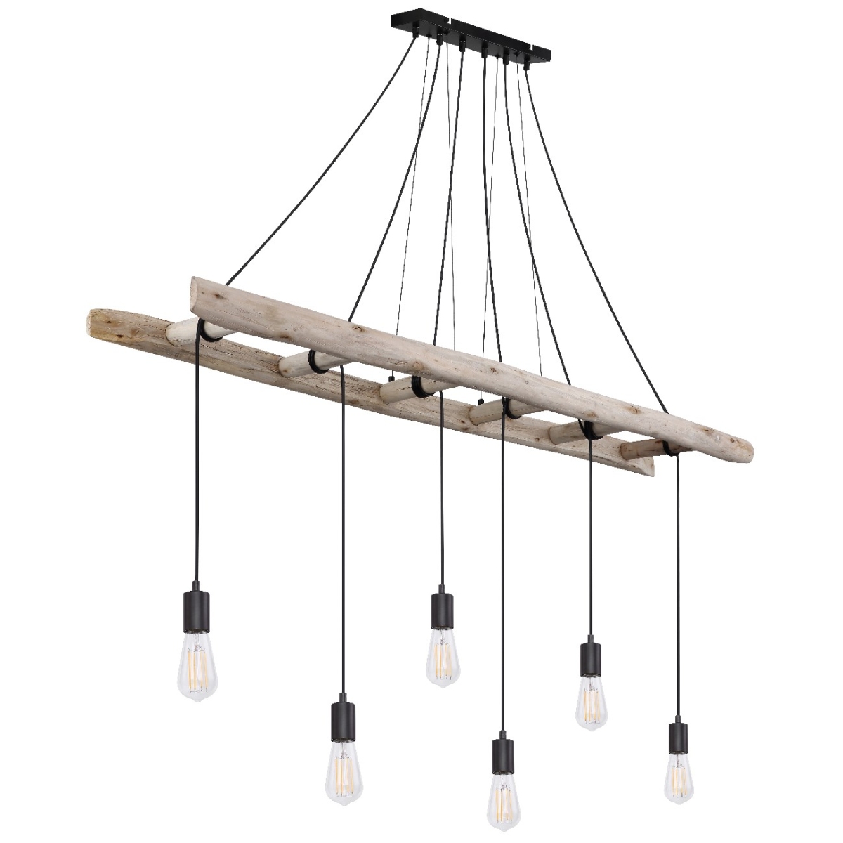 Visilica serije IRMGARD apsolutno privlači pažnju. Ova starinska lampa impresionira drvenim merdevinama koje vise horizontalno u prostoriji, čije se prečke koriste za obmotavanje. Crni kablovi vode do grla E27. Sijalicu možete sami odabrati (6 x max. 60W), samim tim i odrediti boju svetla i jačinu. Zbog uštede energije i dugovečnosti preporučujemo LED sijalice.